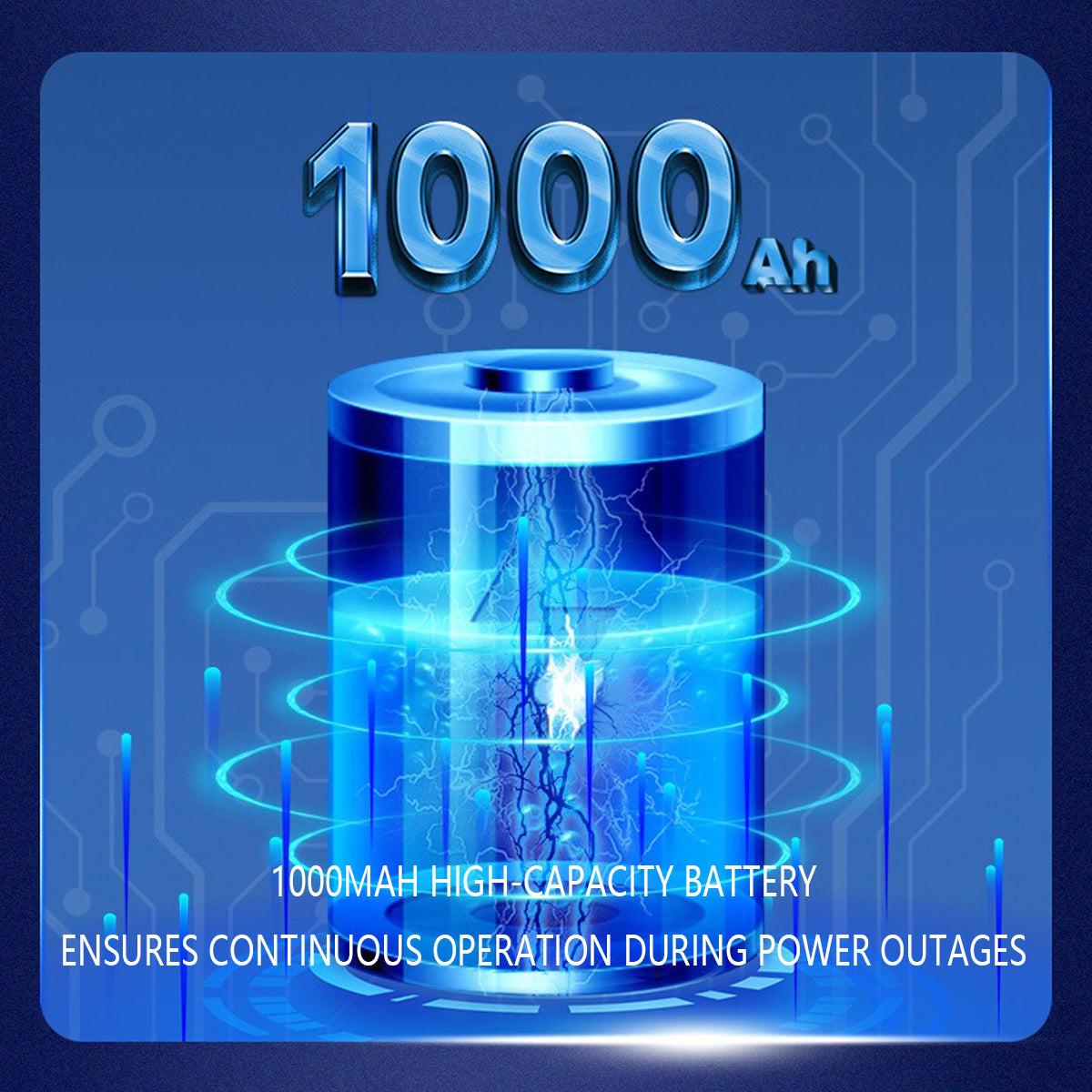 4. Low Power, Built-in Battery: 1000mAh rechargeable battery ensures long-lasting standby. Works even during power outages. Includes USB charging cable (5V/2A).