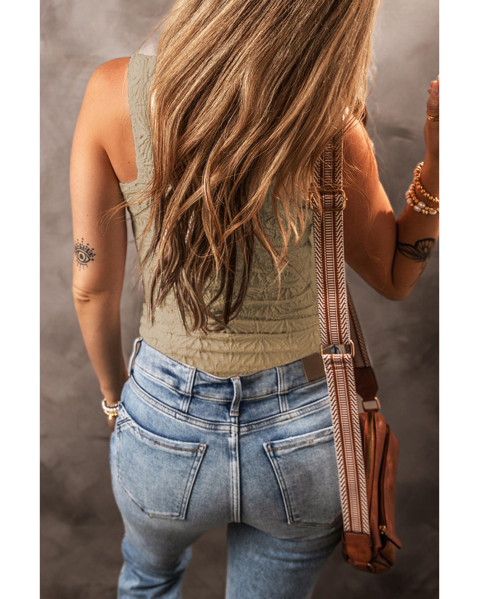 Smoke Gray Floral Jacquard Square Neck Tank Top – 2XL
