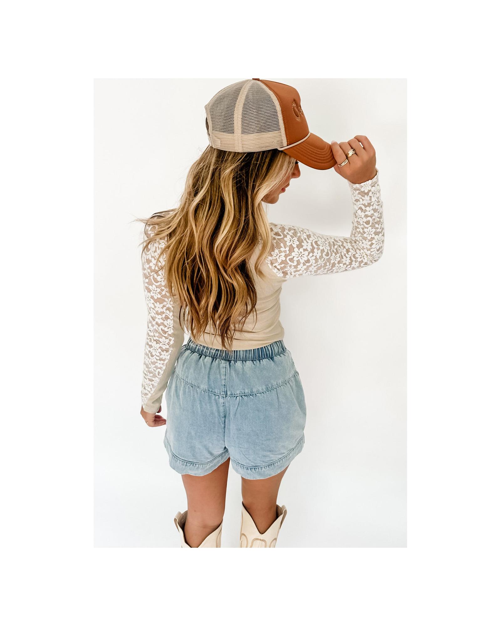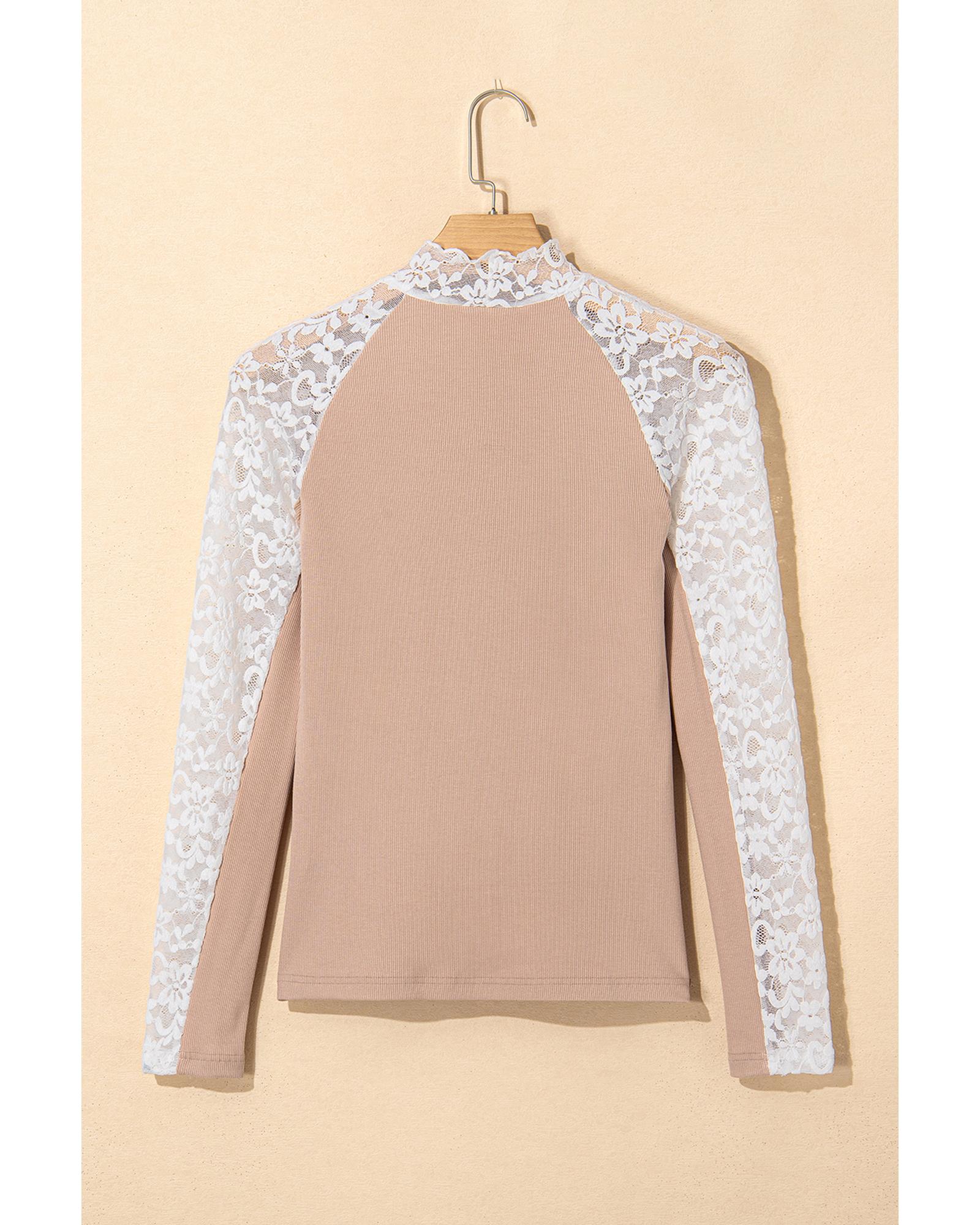 - Long sleeves with floral lace detail