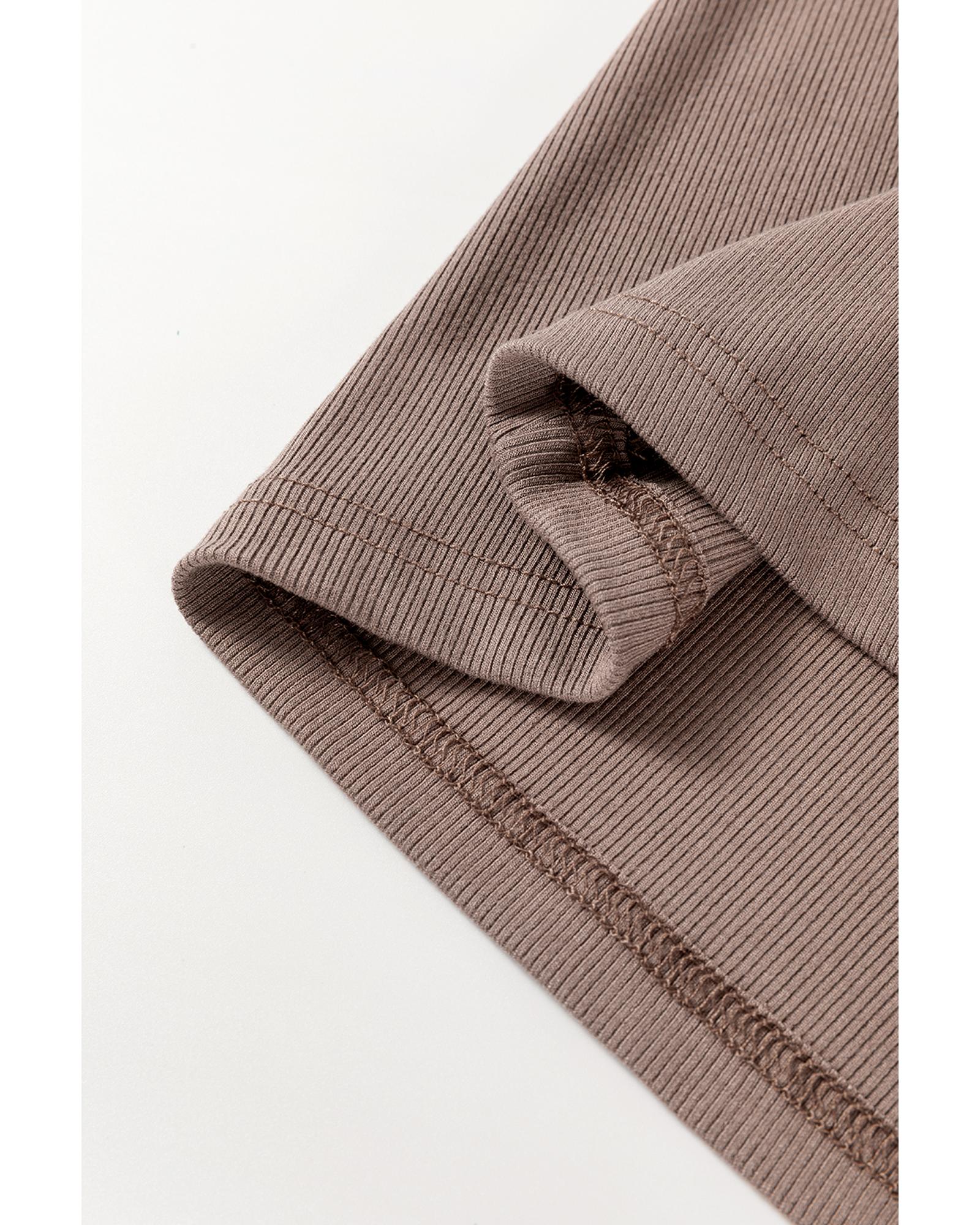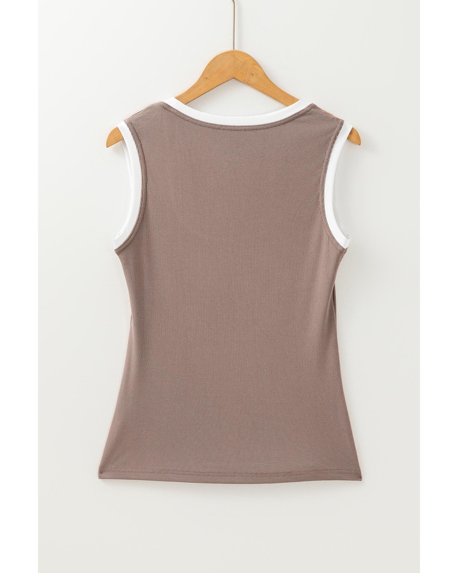 Smoke Gray Ribbed Knit Colorblock Edge U Neck Slim Fit Tank Top – L