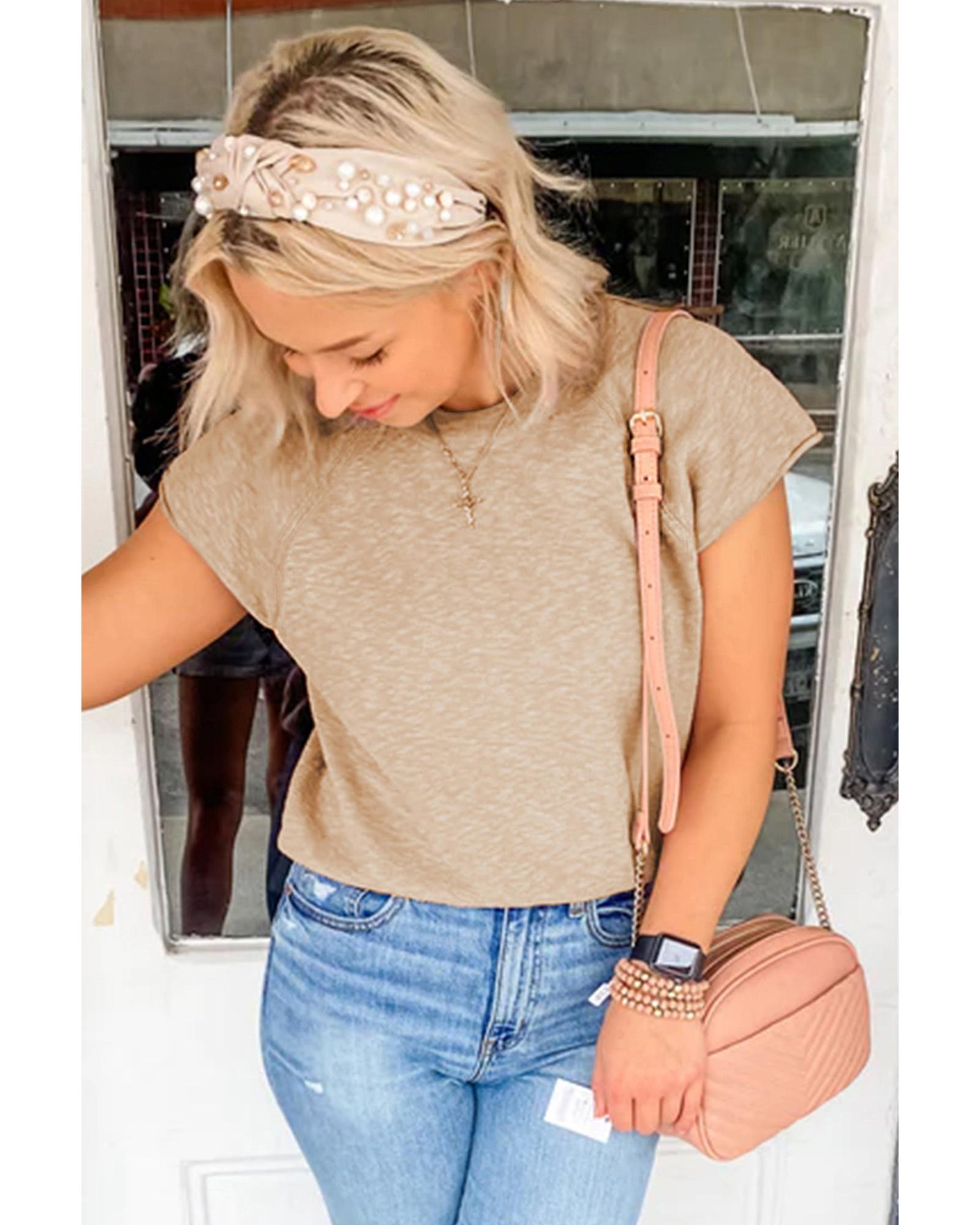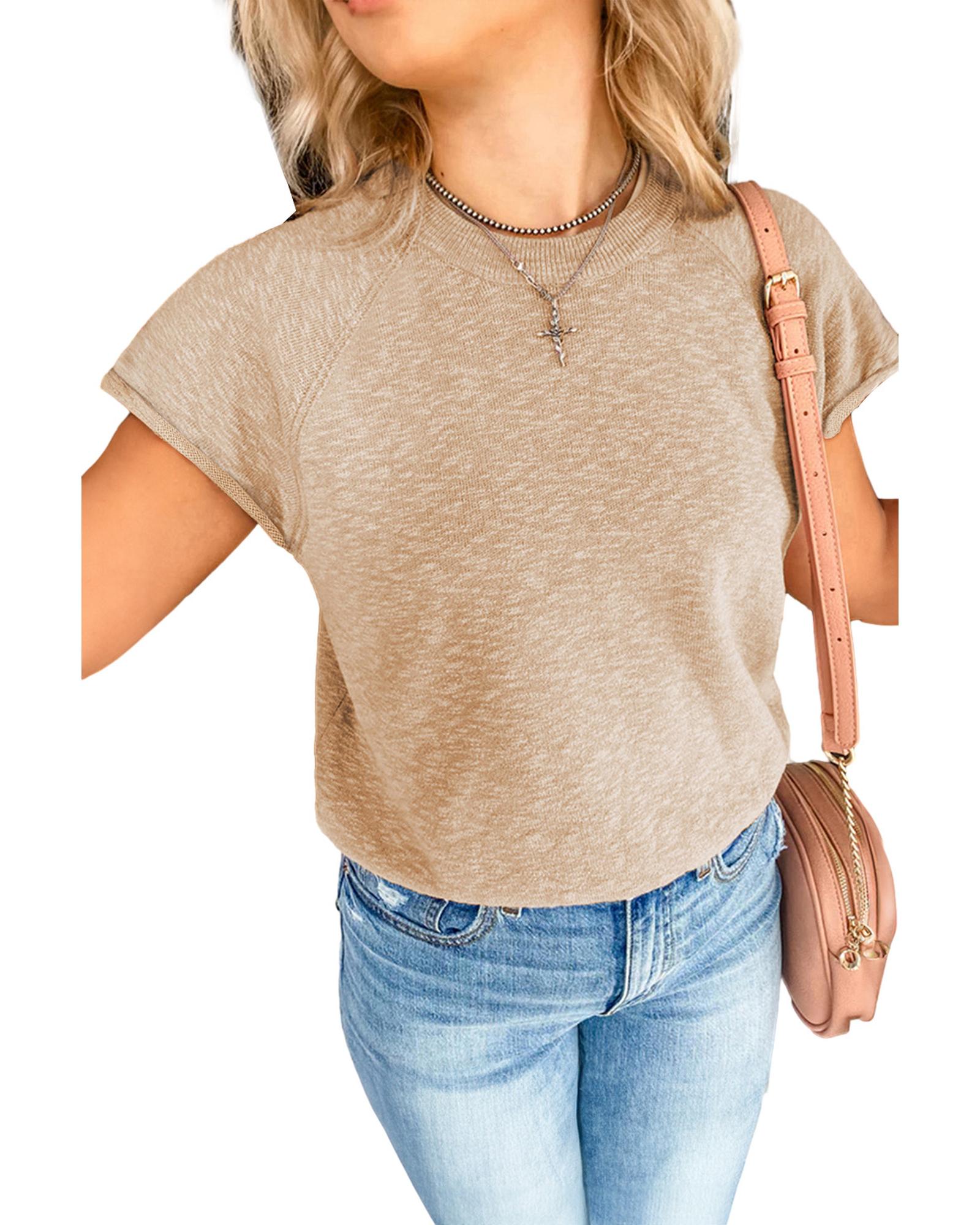 - Smoke Gray Ribbed Raglan Short Sleeve Sweater