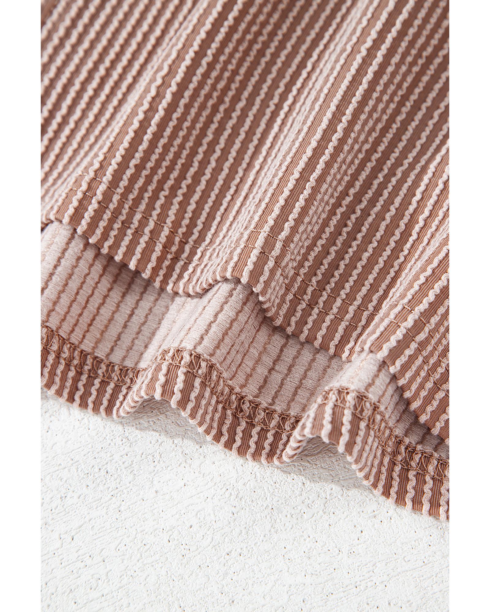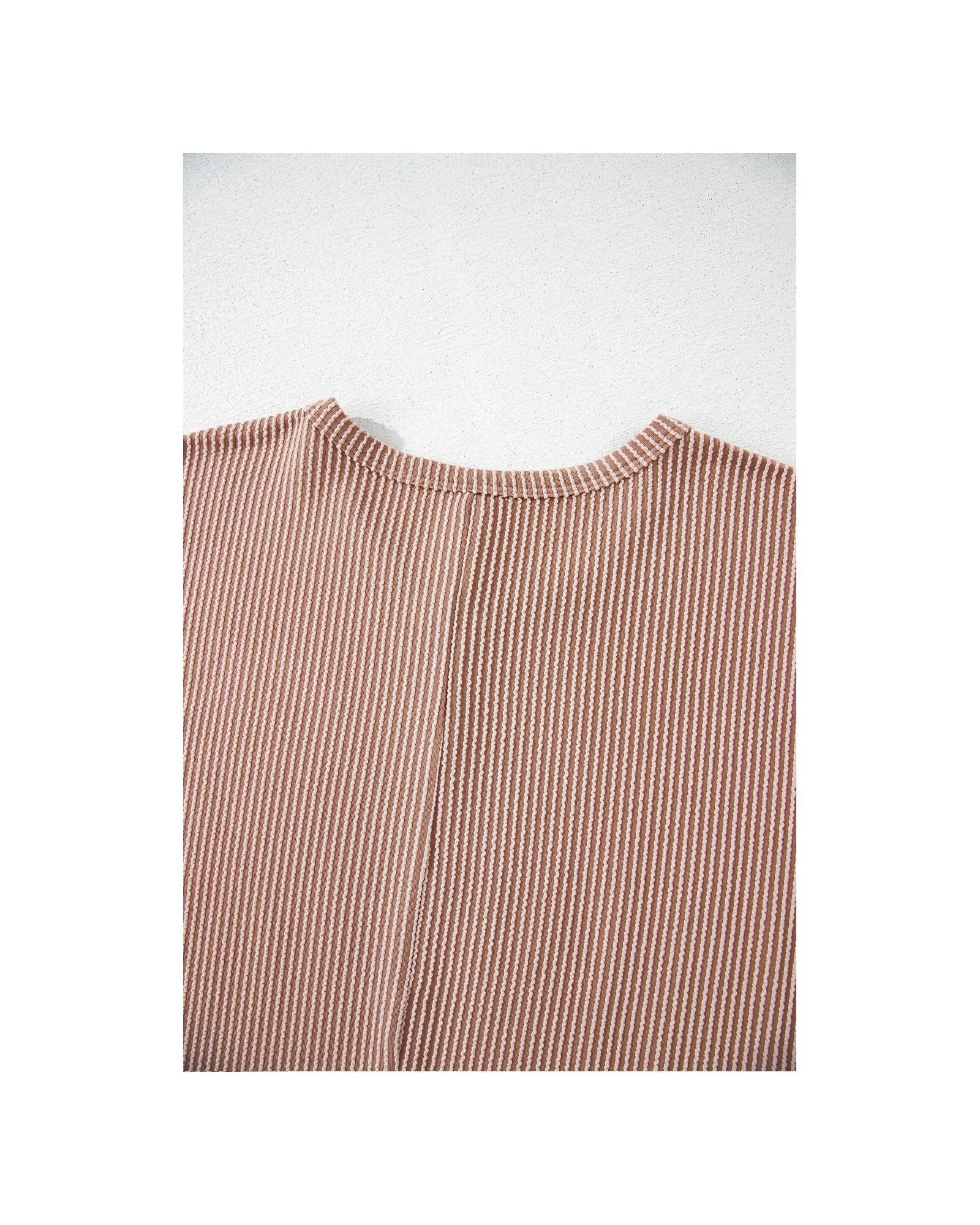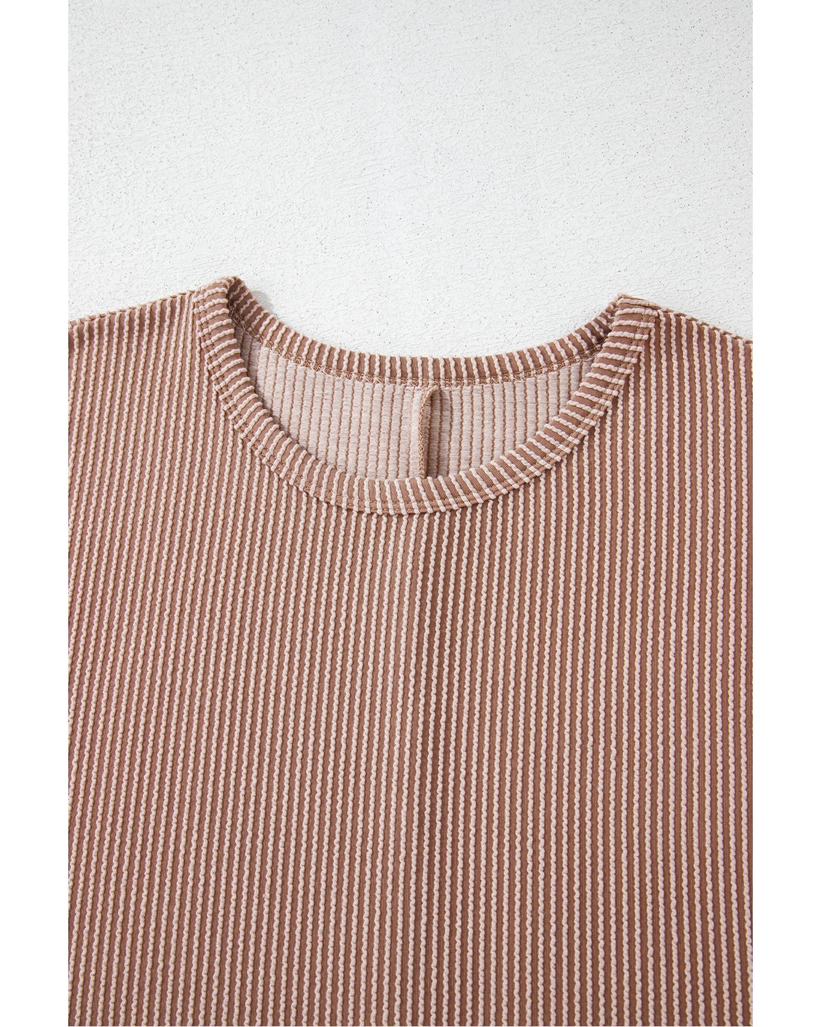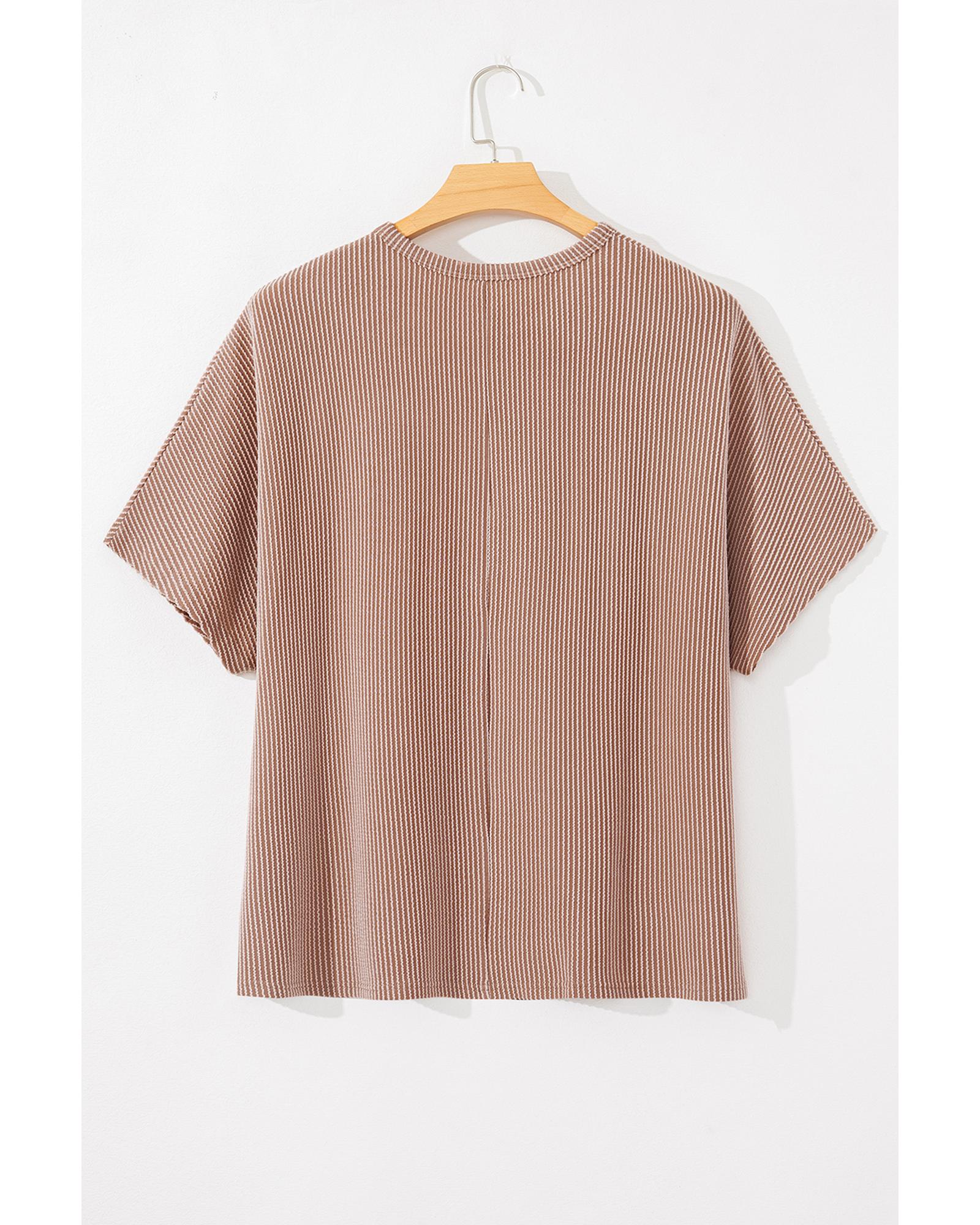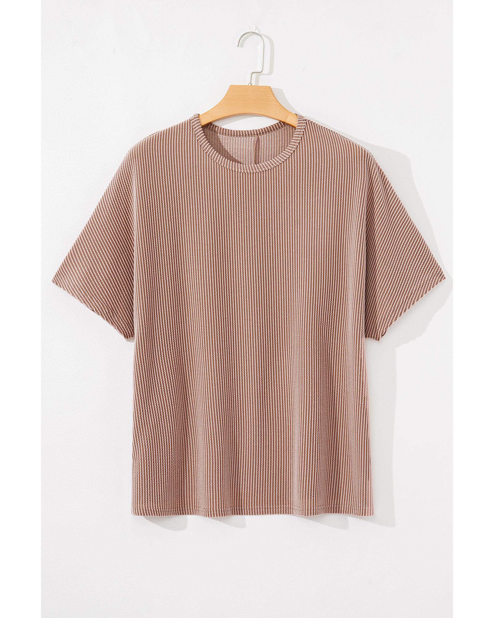 - Smoke Gray Ribbed Striped Crew Neck Plus Size Knit T Shirt