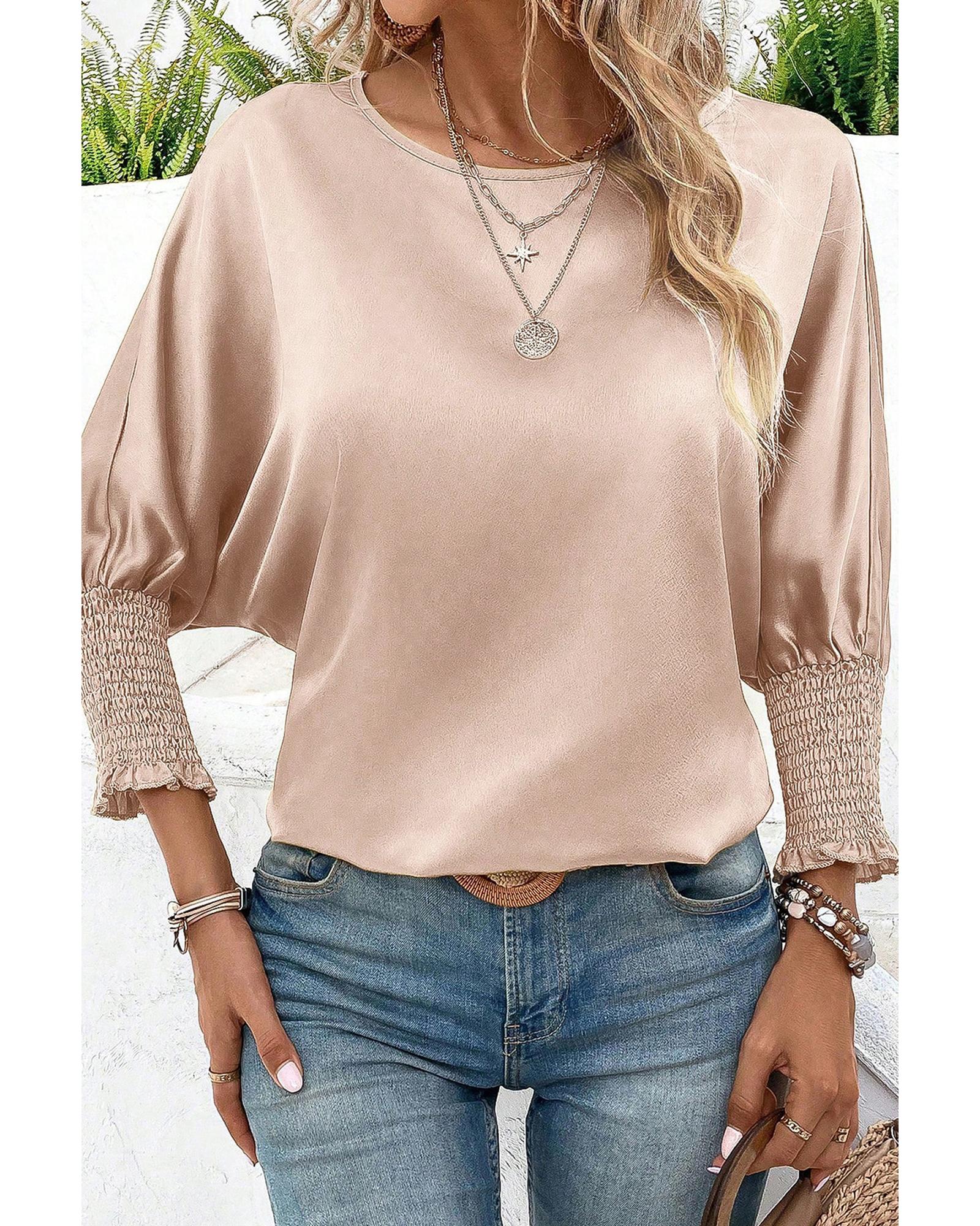 Smoke Gray Shirred Dolman Sleeve Satin Blouse – M