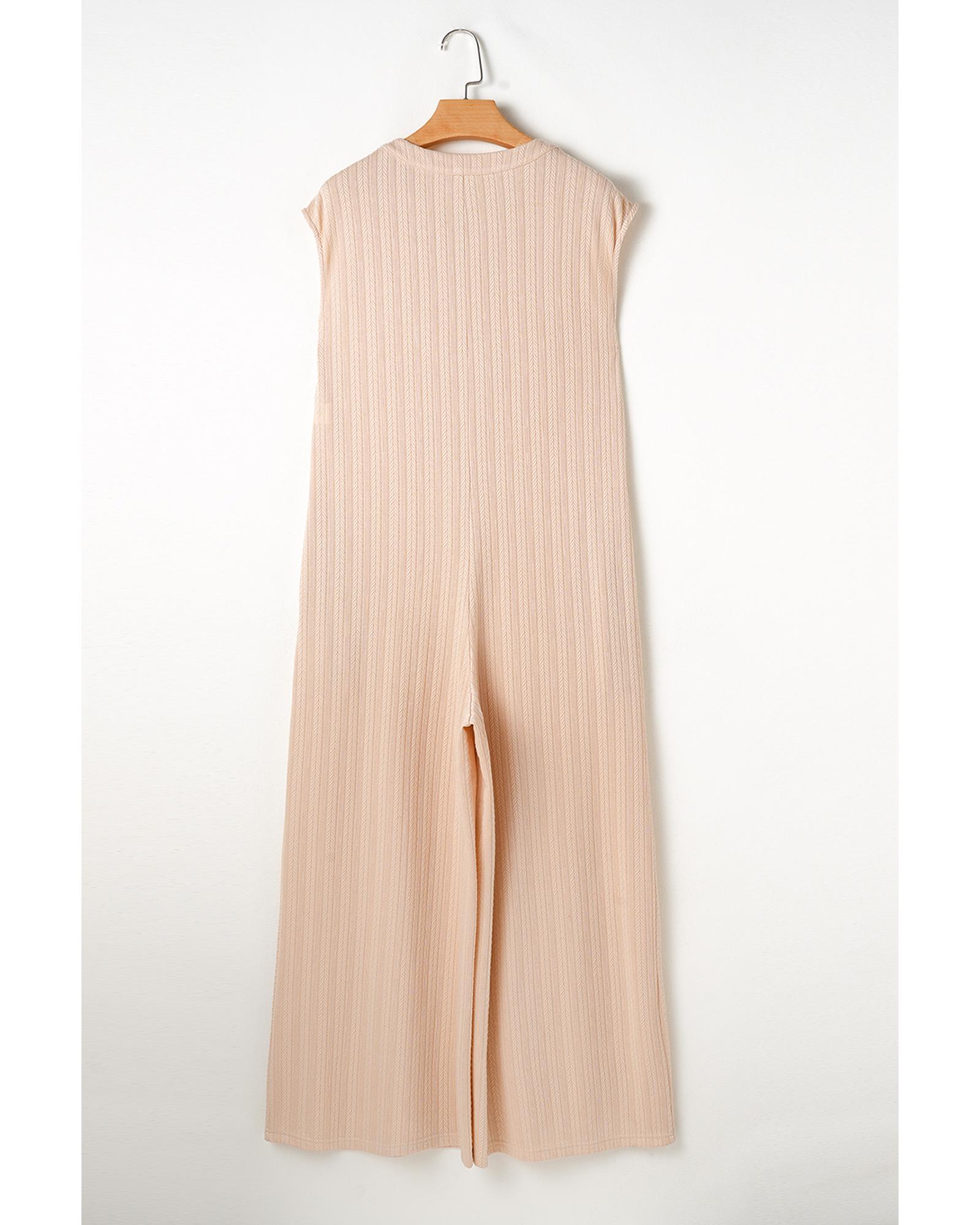 Smoke Gray Textured Buttoned Wide Leg Sleeveless Jumpsuit – XL