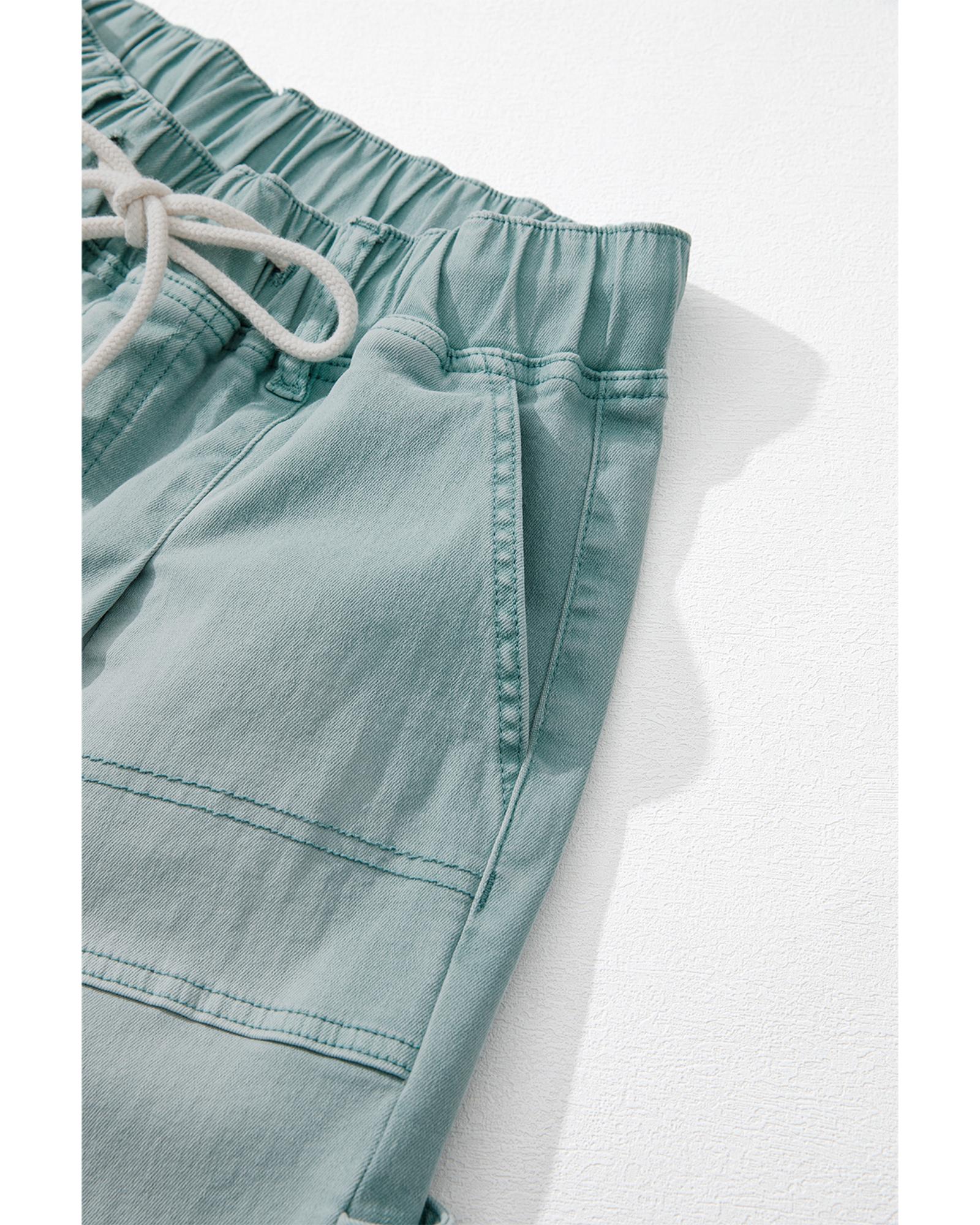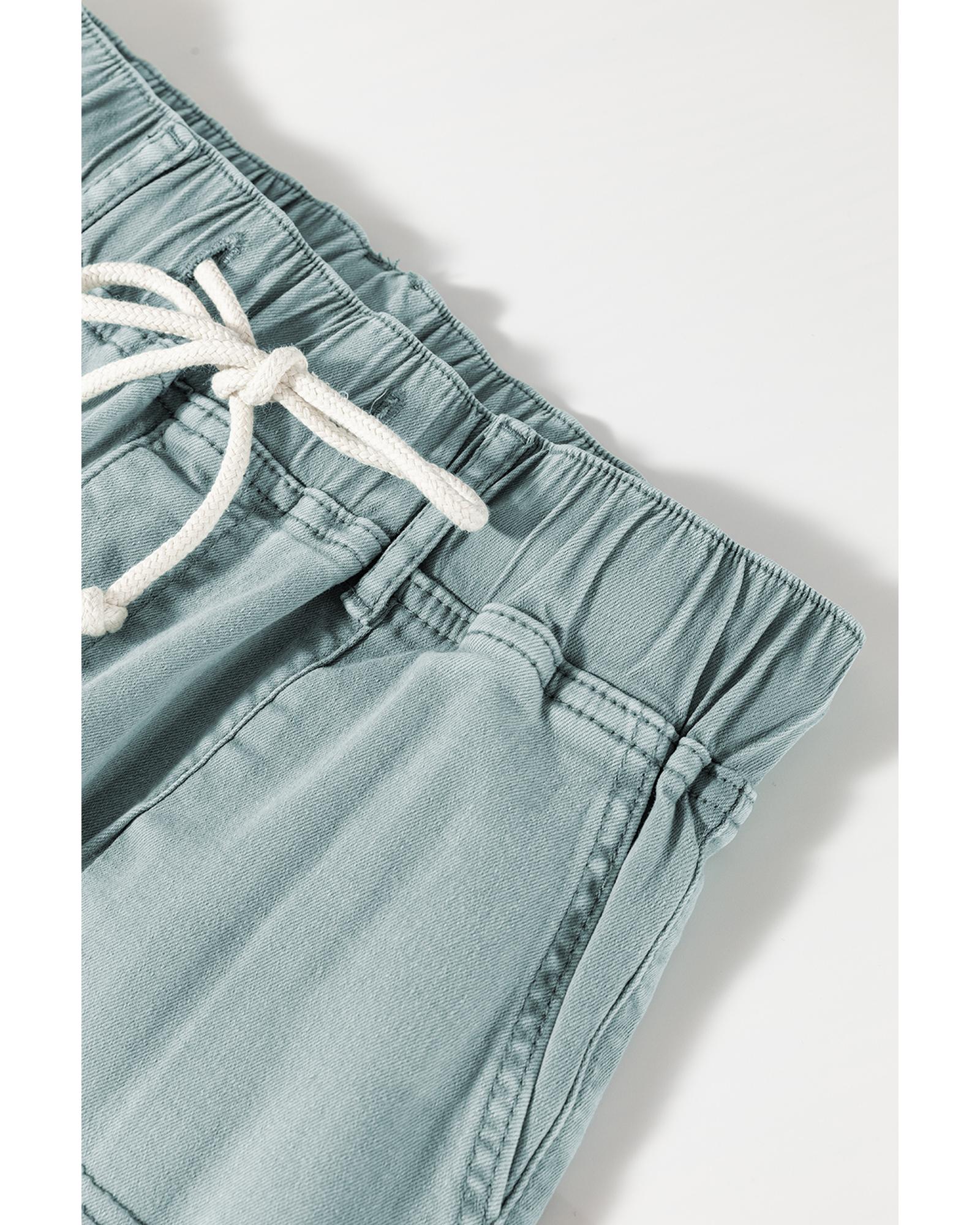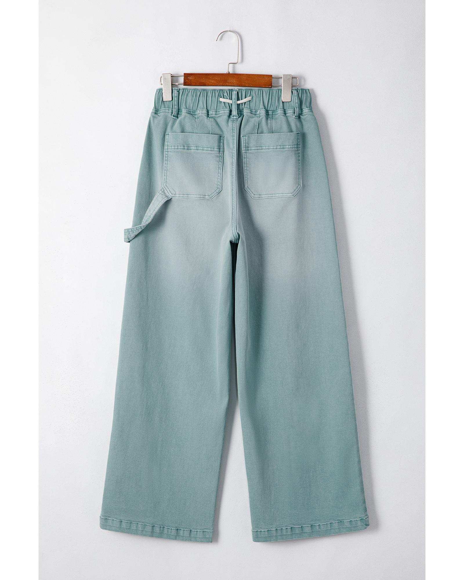 Smoke Green Mineral Wash Drawstring High Waist Wide Leg Jeans – 14 US