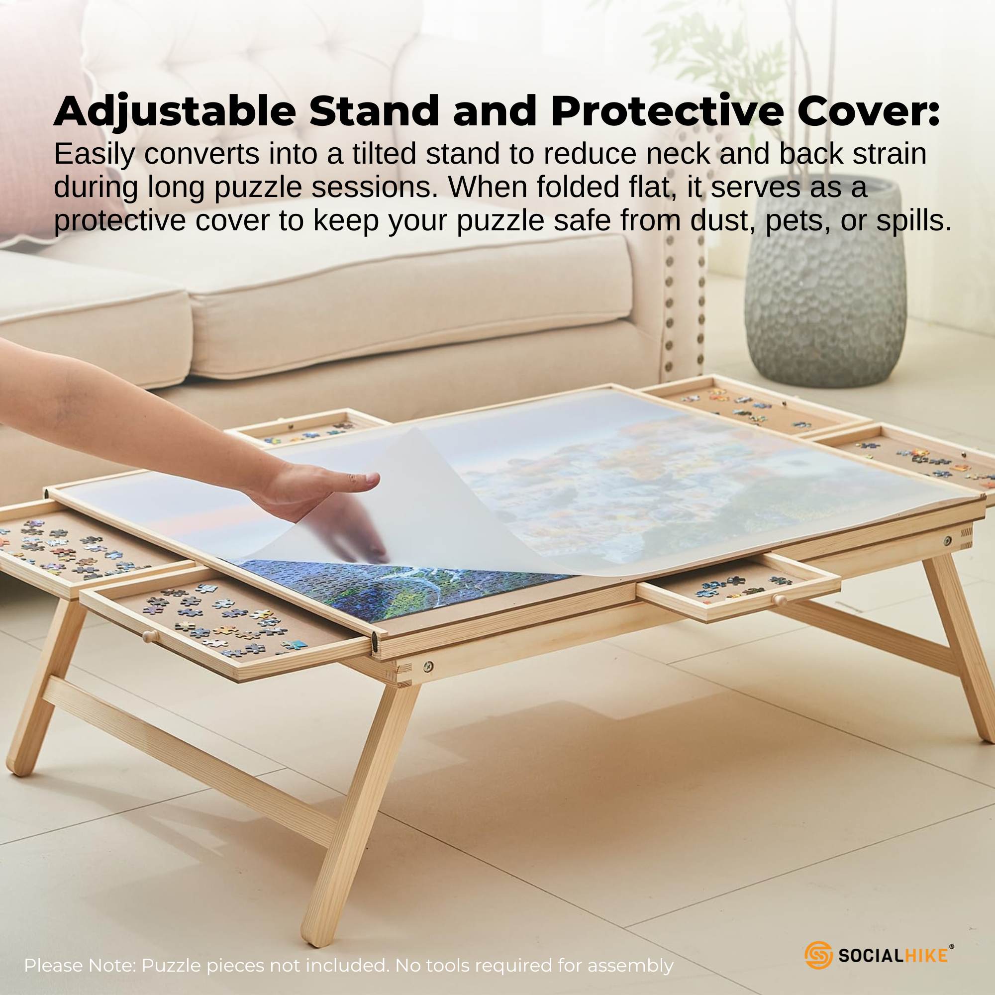 Social Hike 1500pcs Puzzle Board Table 6 Drawer with Cover – Wooden Folding Legs