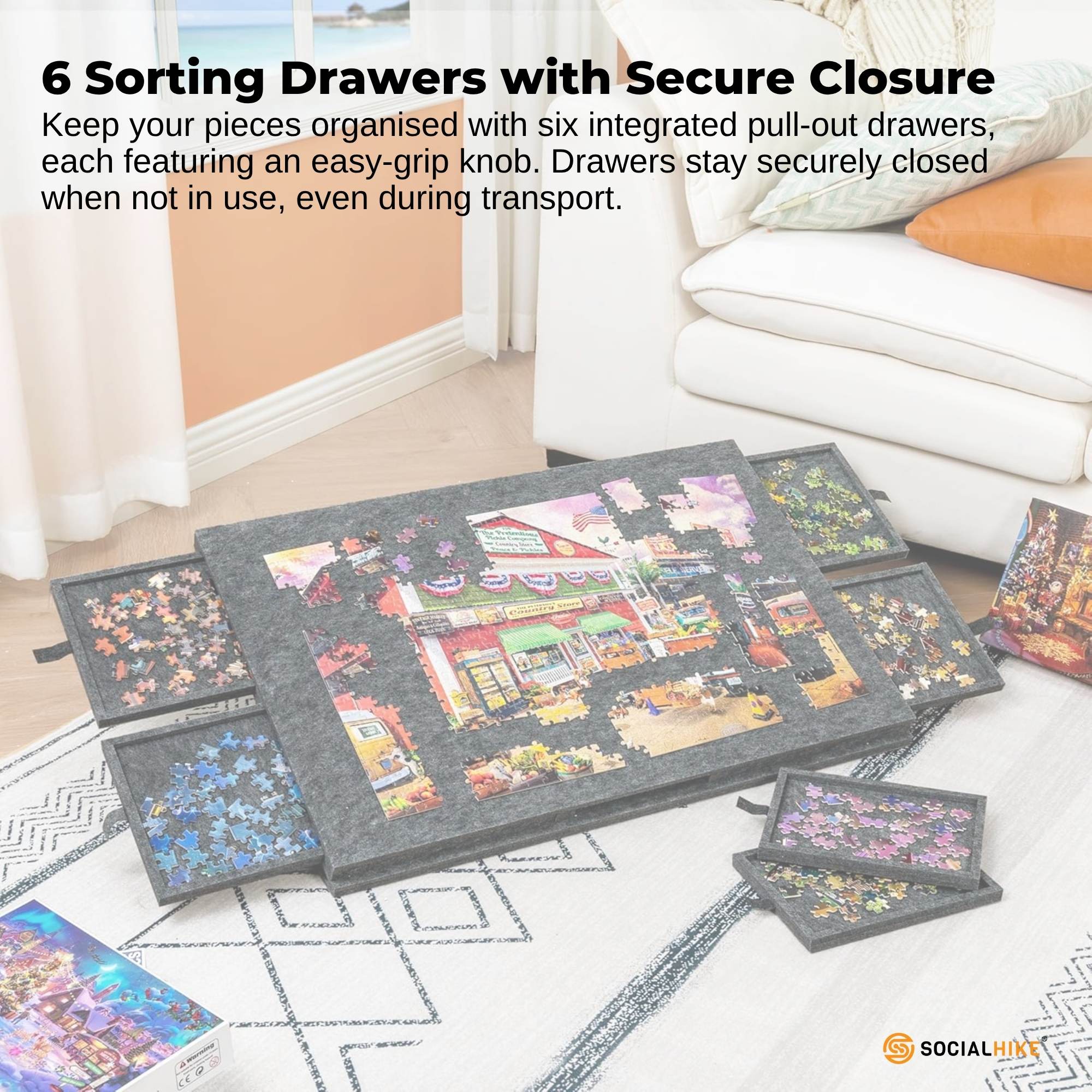 Social Hike 1500pcs Puzzle Board 6 Drawer with Cover - Wooden Rotating Tabletop