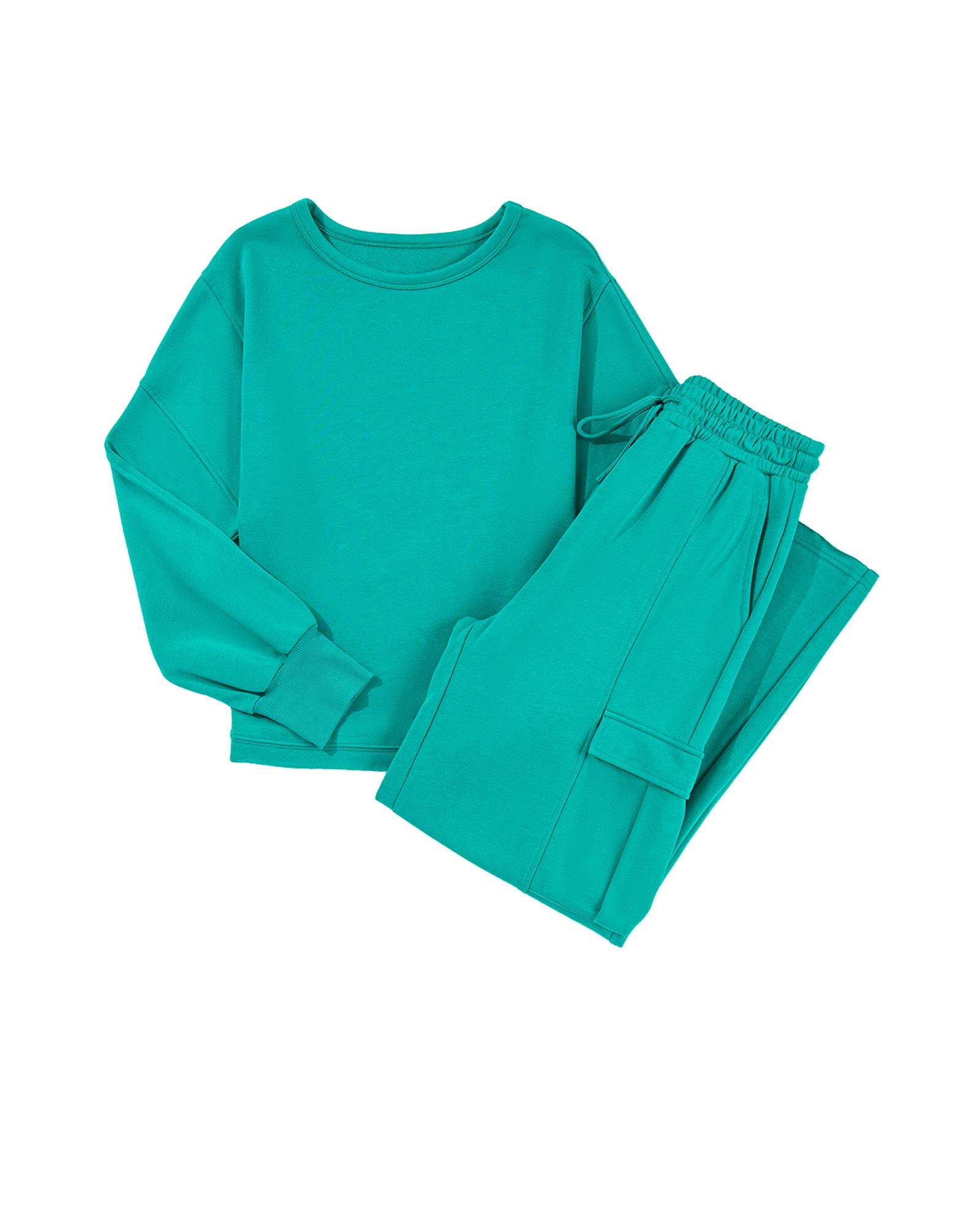 Gray Solid Color Loose Tee 2 Piece Shorts Set - M