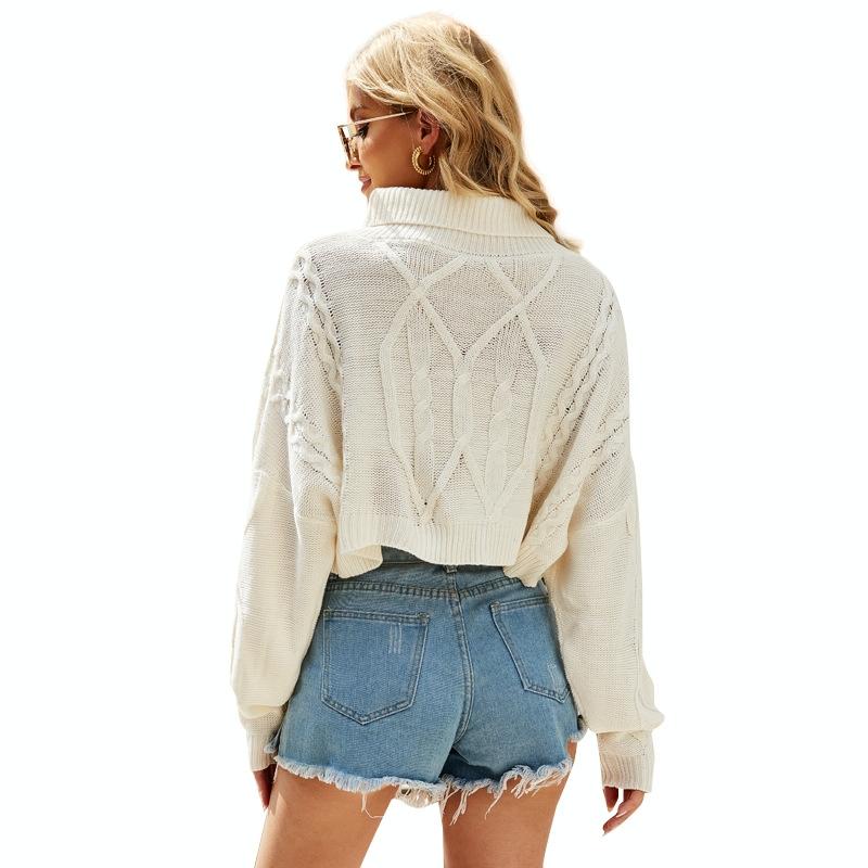 • 1 x Solid Colour High Neck Pullover Knitted Top Short Stranded Flowers Knitted Sweater