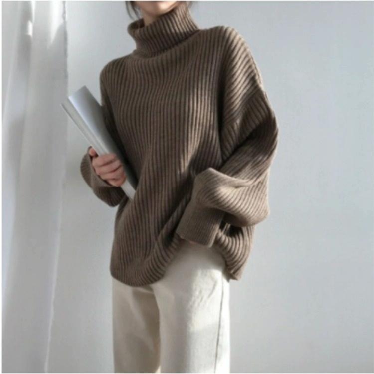 • 1 x Solid Colour Turtleneck Outer Wear Pullover Casual Sweater Beige – Free Size