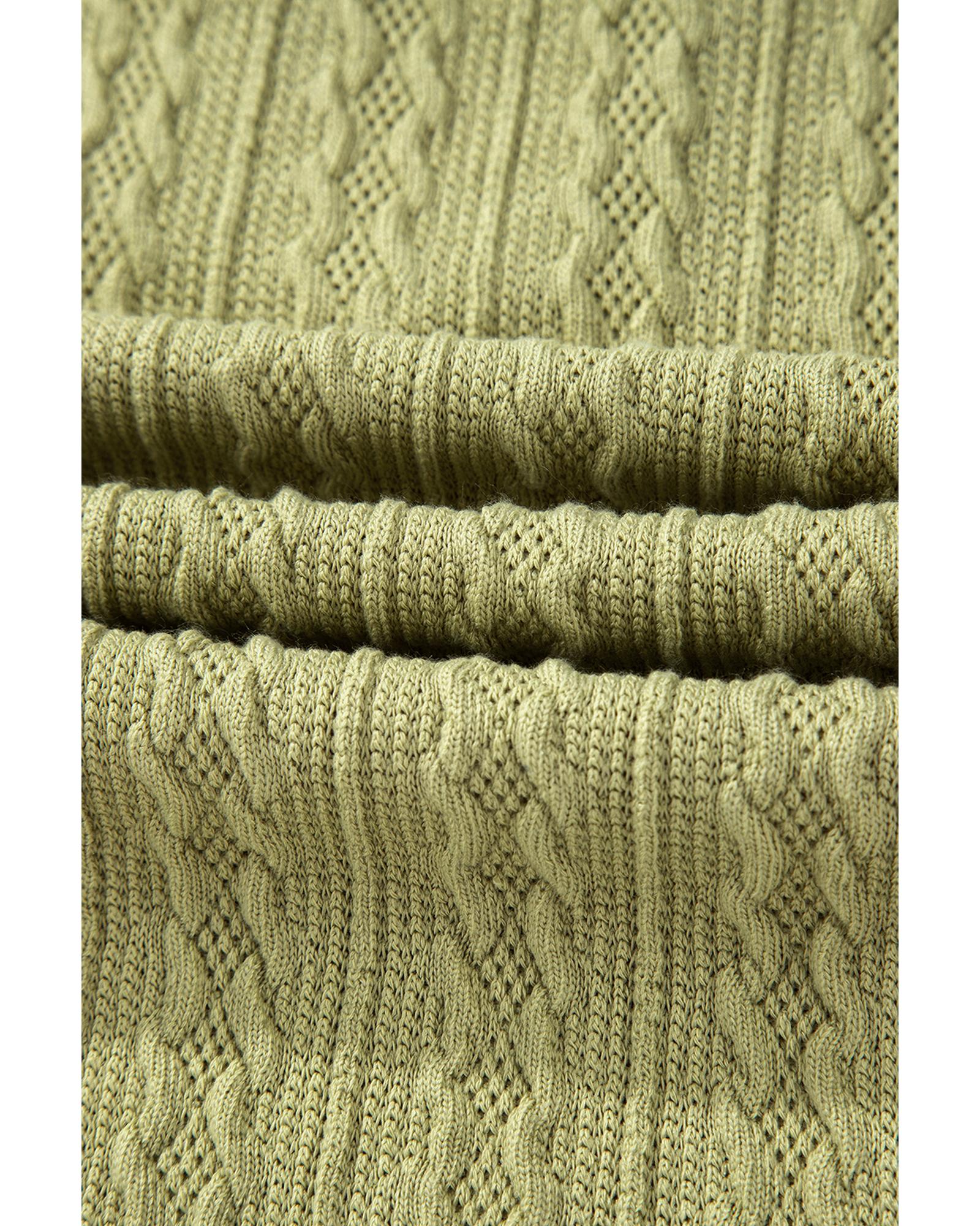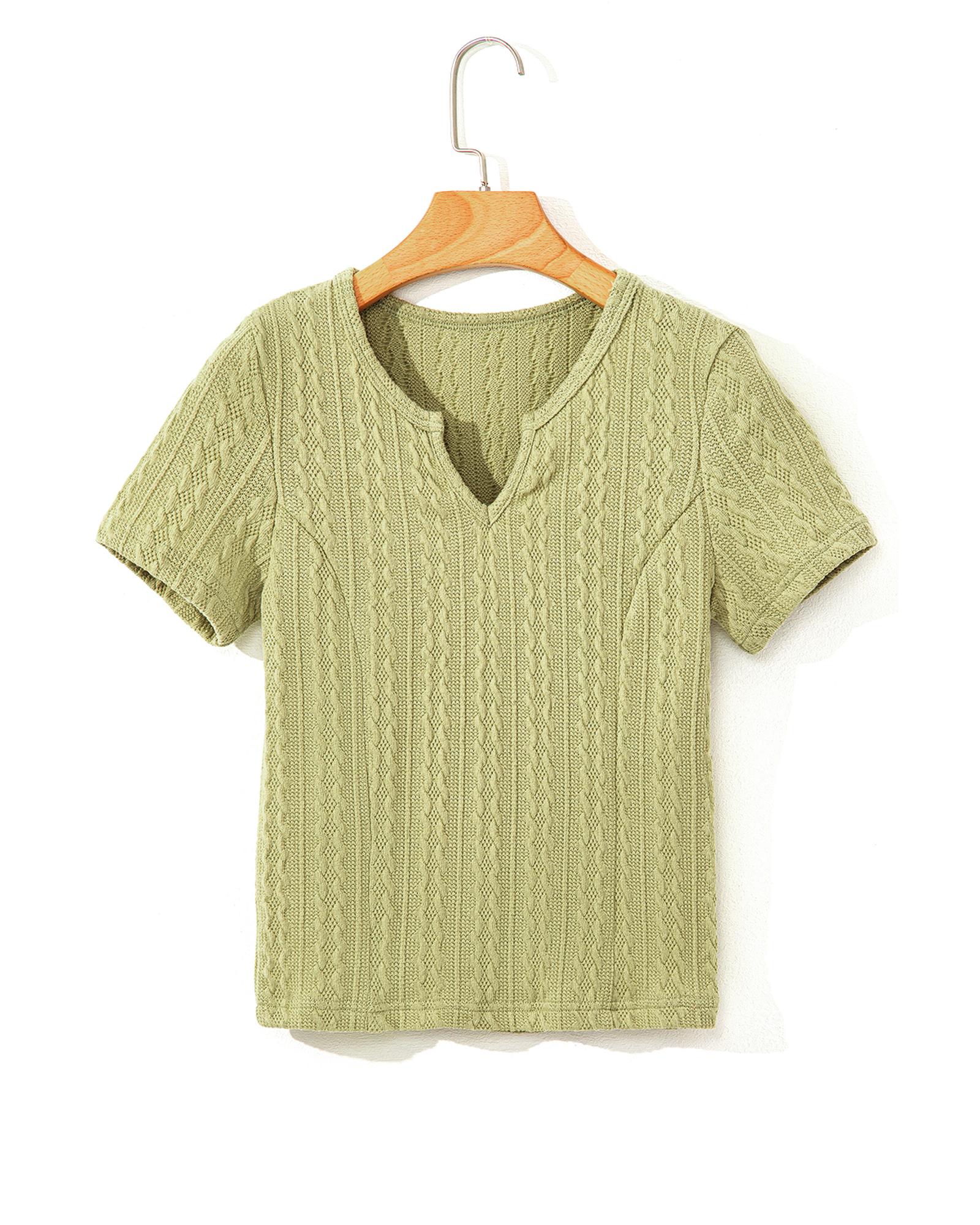 Spinach Green Textured Knit Slim Fit Notch V Neck T Shirt – L