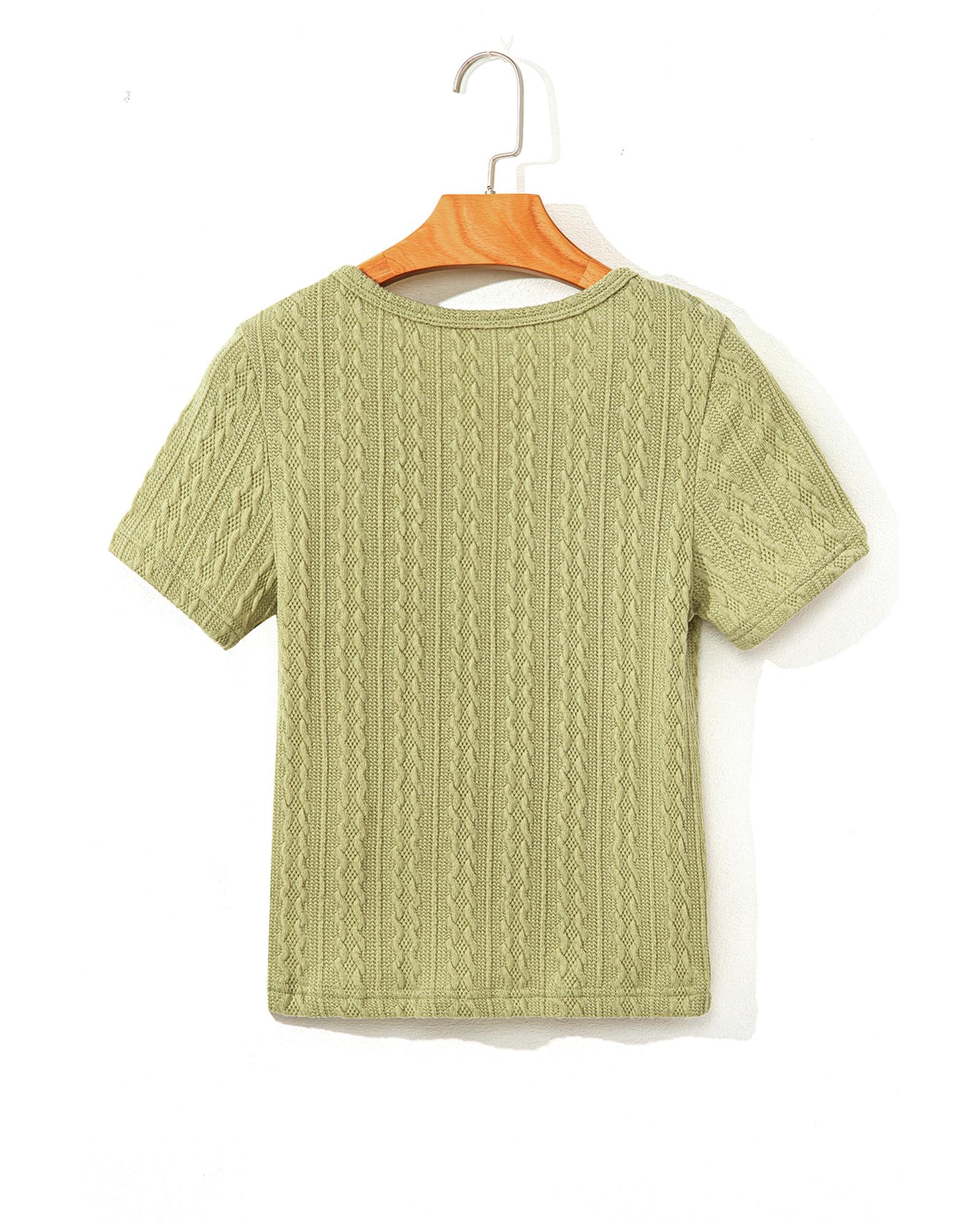 Spinach Green Textured Knit Slim Fit Notch V Neck T Shirt – M