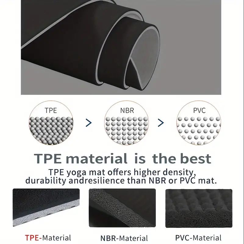 [Upgraded Eco Skin Friendly Material]TPE Is The Latest Technological Improvement To Traditional Yoga Mats. Tested And Certified By SGS, This Mat Doesn’t Contain PVC, Latex Or Any Harmful Materials.TPE Material Offers Higher Density, Durability And Resilience Compared To NBR And PVC YOGA MATS. Safe Yoga Mat For Men, Women, Girls, Kids, Etc.