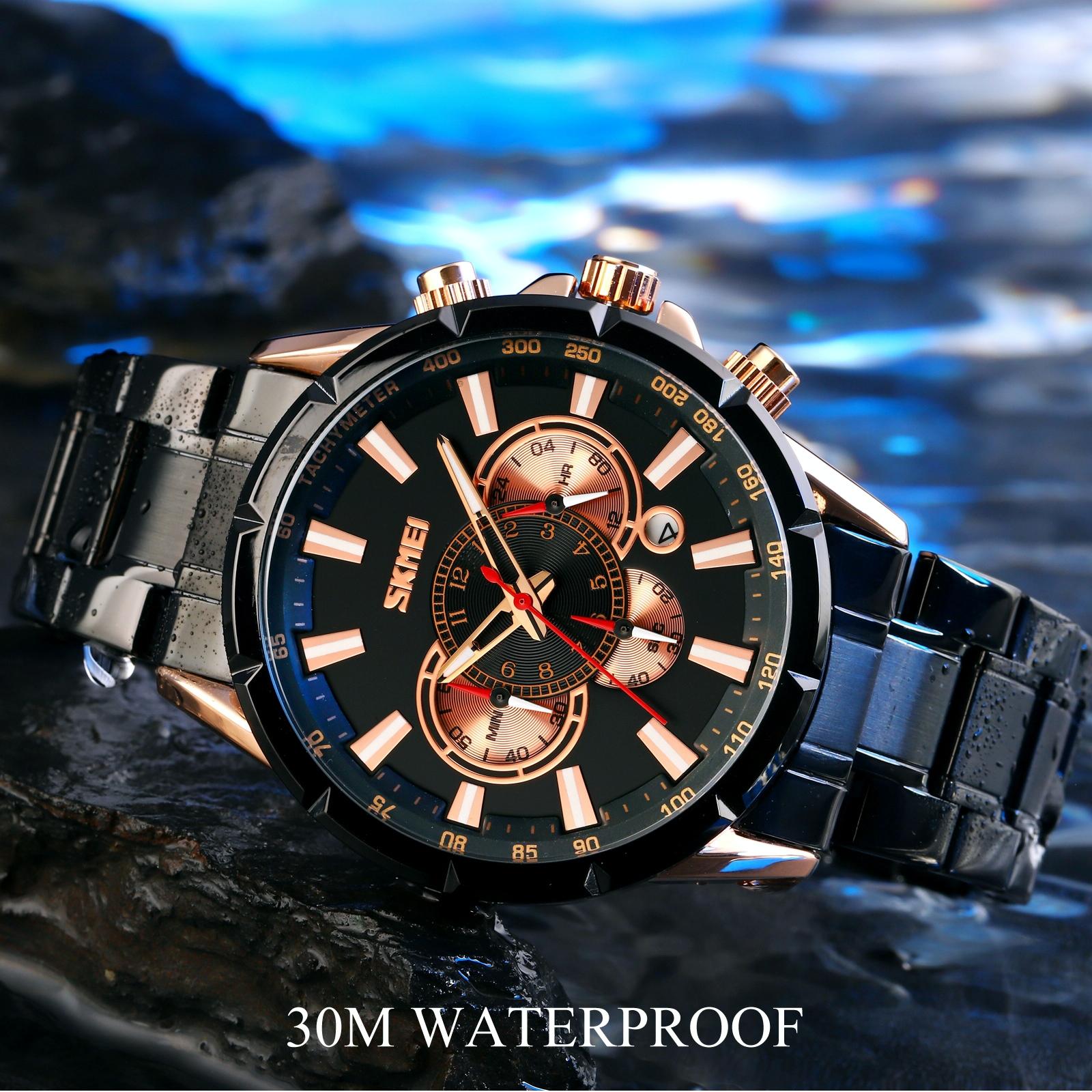 Stainless Steel Men Quartz Watch with Calendar – 9241 – Rose Gold Black
