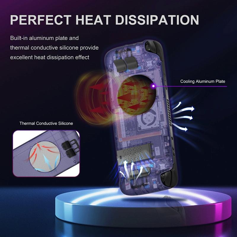 Steam Deck Gaming Console Case With Transparent Thermal Back And Bracket – Purple