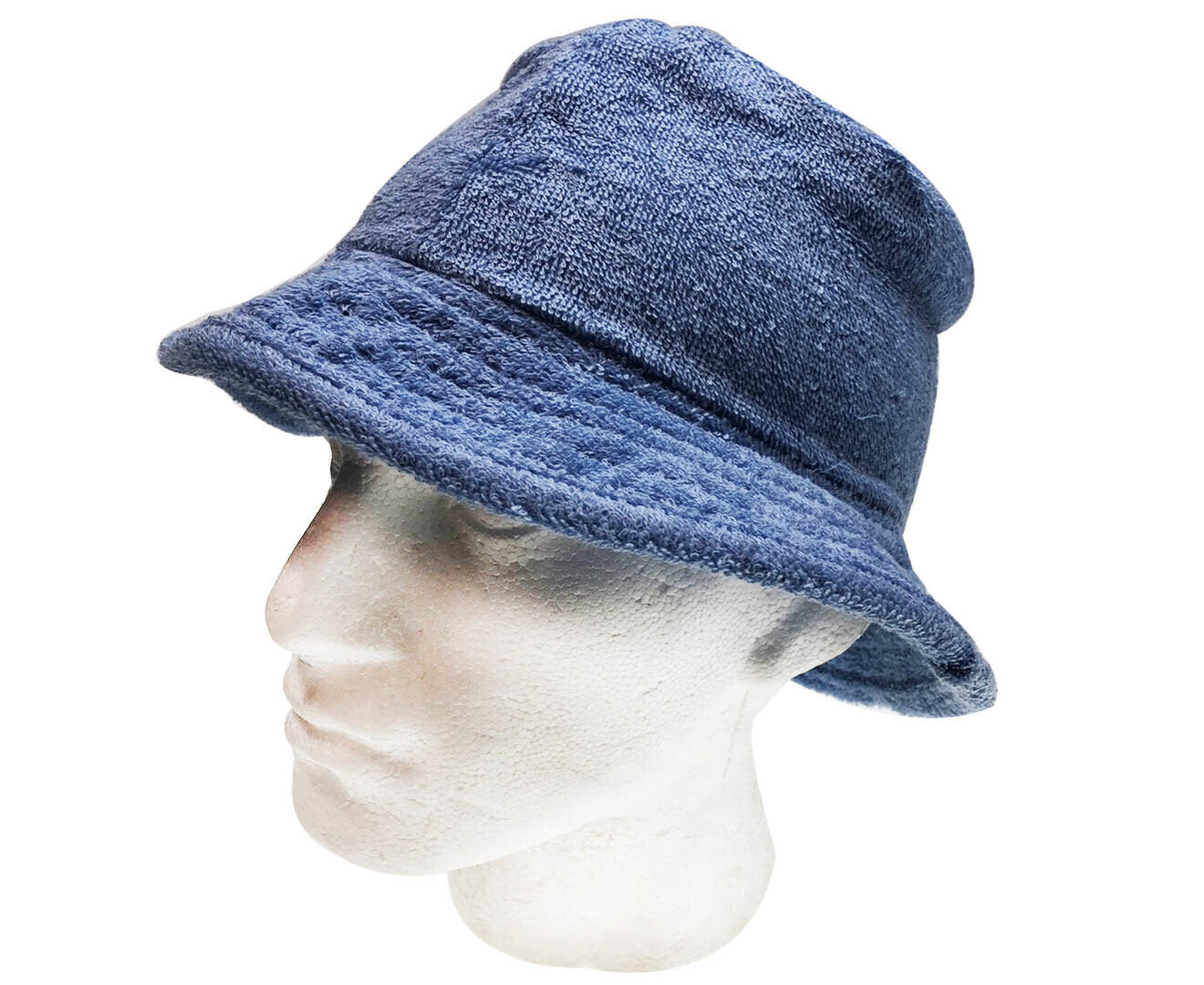 Terry Towelling BUCKET HAT Daggy Fishing Camping Lad Cap Retro 100% COTTON - Navy - Small