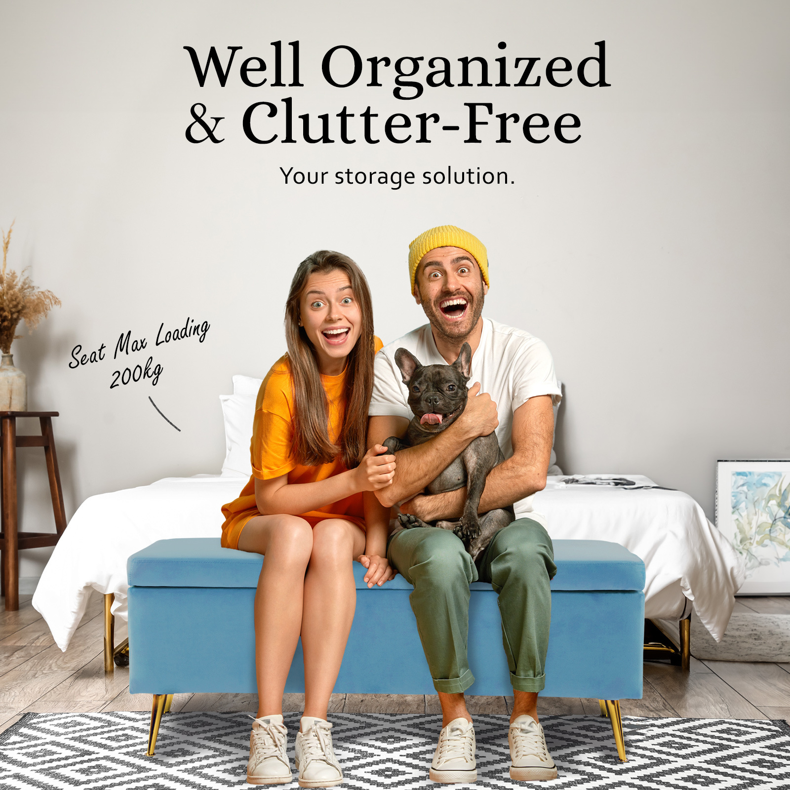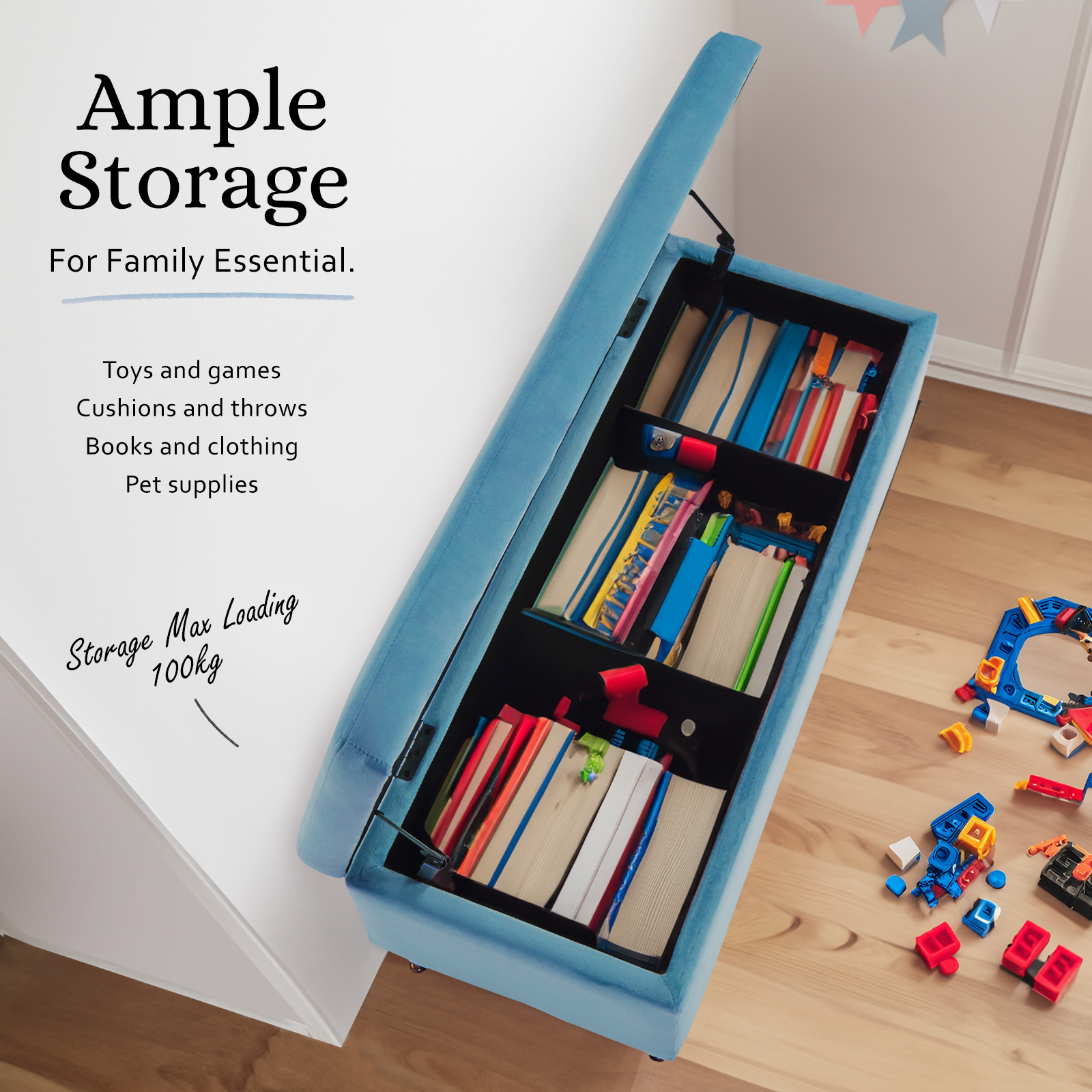 Storage Ottoman Stool Bench Seat 110cm Velvet OCEAN BLUE