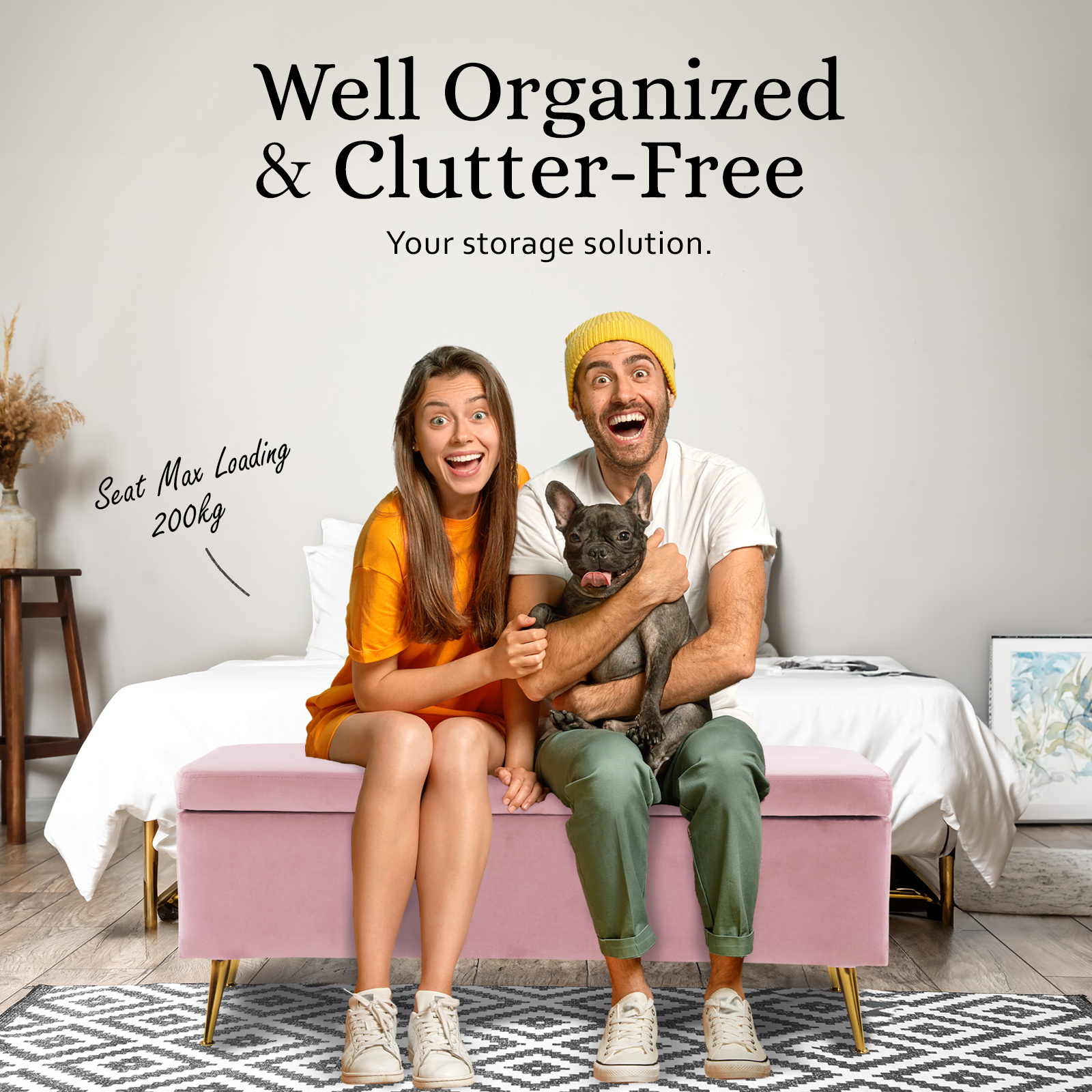 Storage Ottoman Stool Bench Seat 110cm Velvet PINK