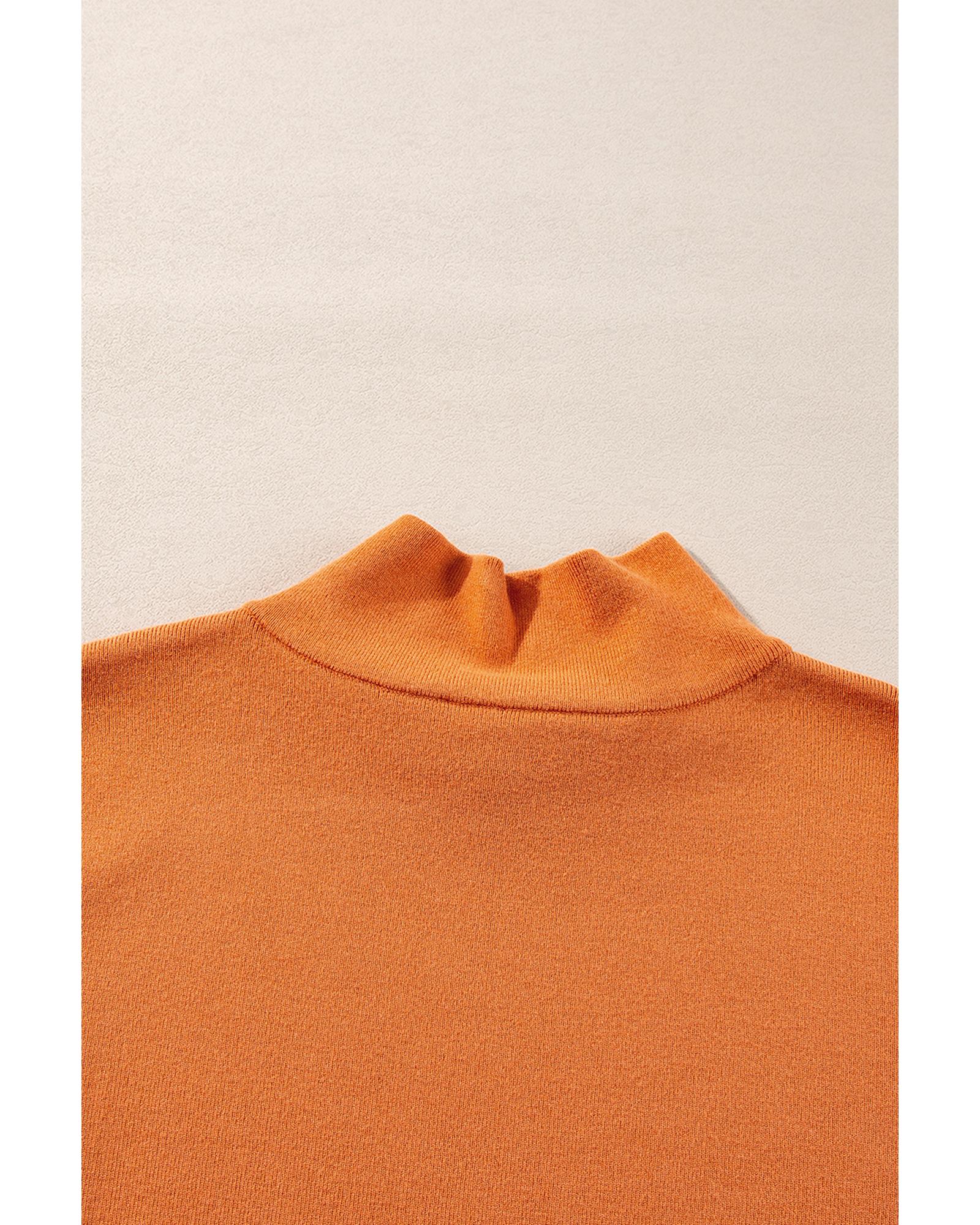 Straw Yellow Color Contrast Edge Mock Neck Slim Fit Sweater – L