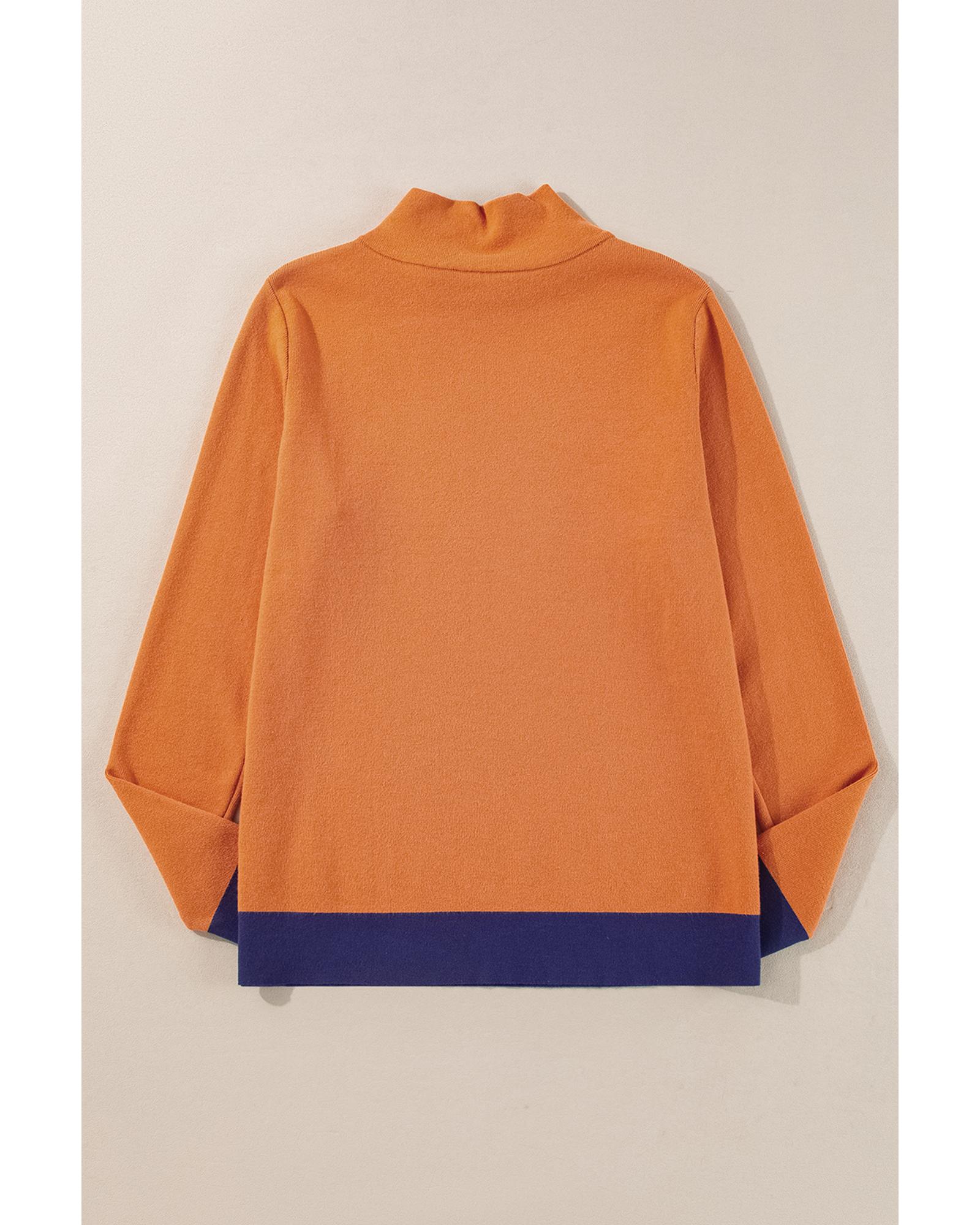 Straw Yellow Color Contrast Edge Mock Neck Slim Fit Sweater – S