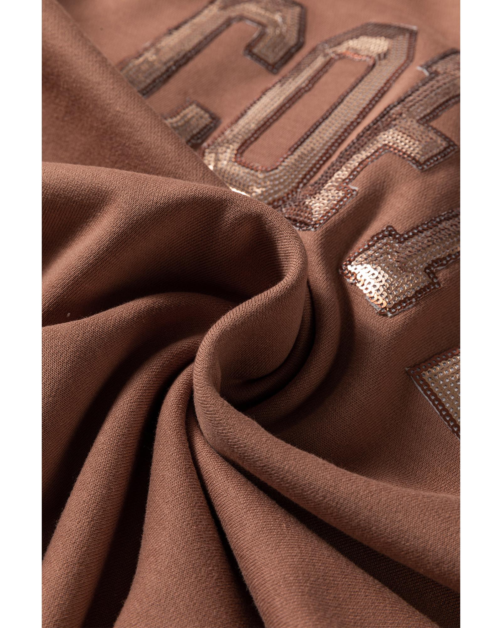 Straw Yellow Sequined COFFEE Loose Fit Sweatshirt and Shorts Set – L