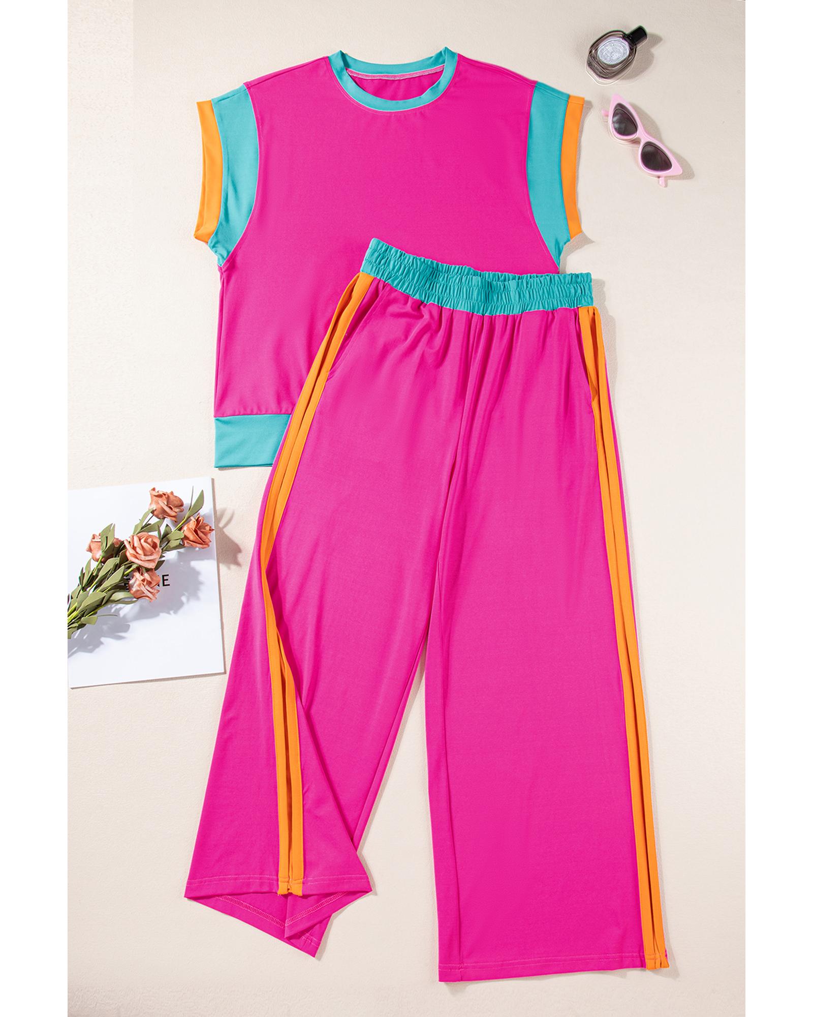 Strawberry Pink Color Block Detail Casual Two-piece Set – M