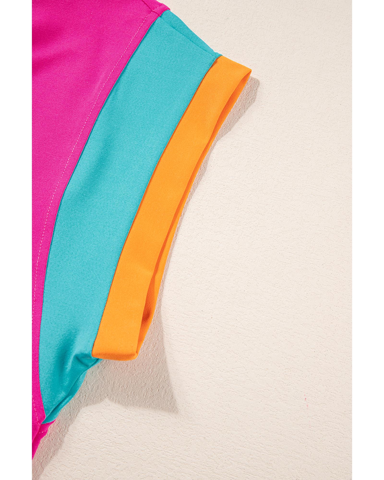Strawberry Pink Color Block Detail Casual Two-piece Set – XL