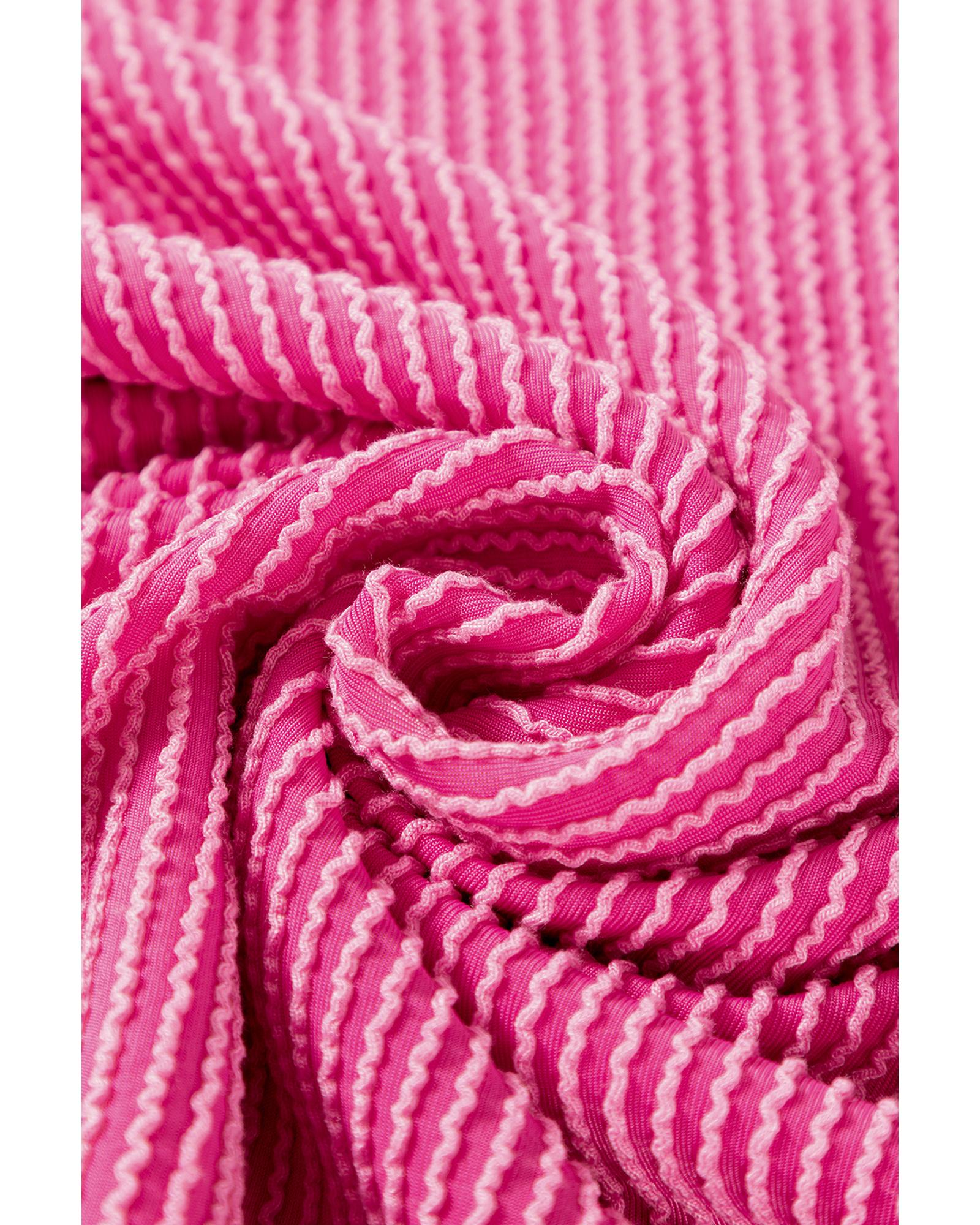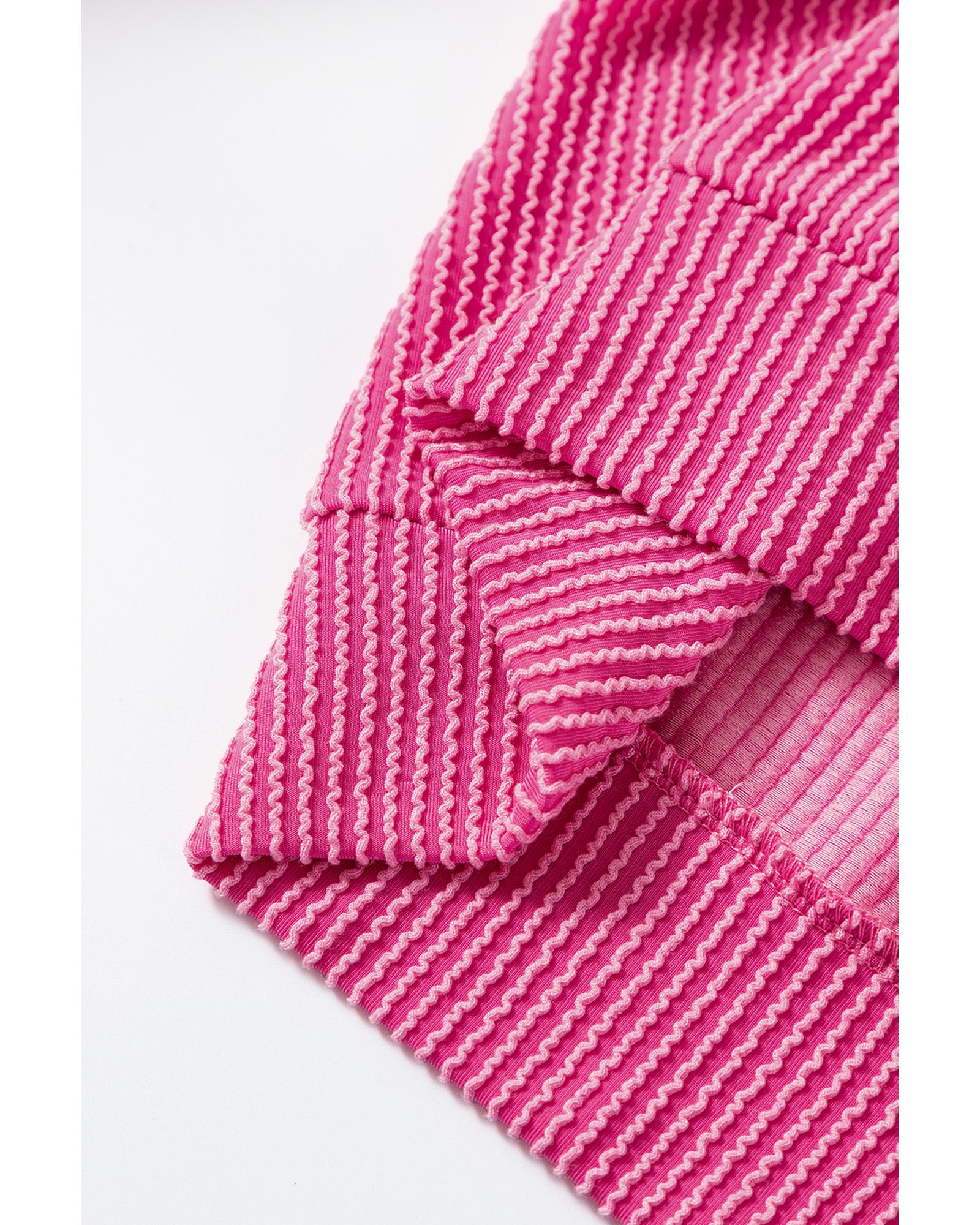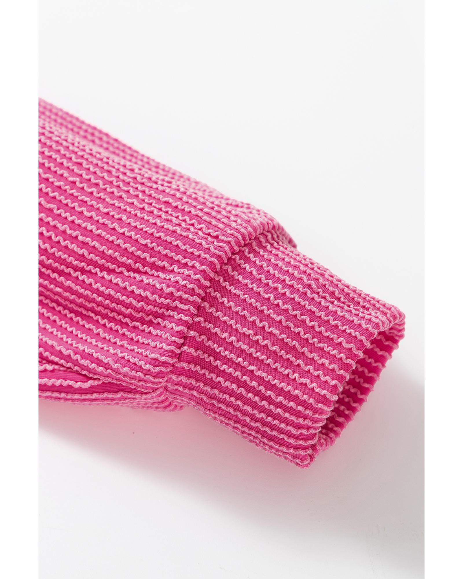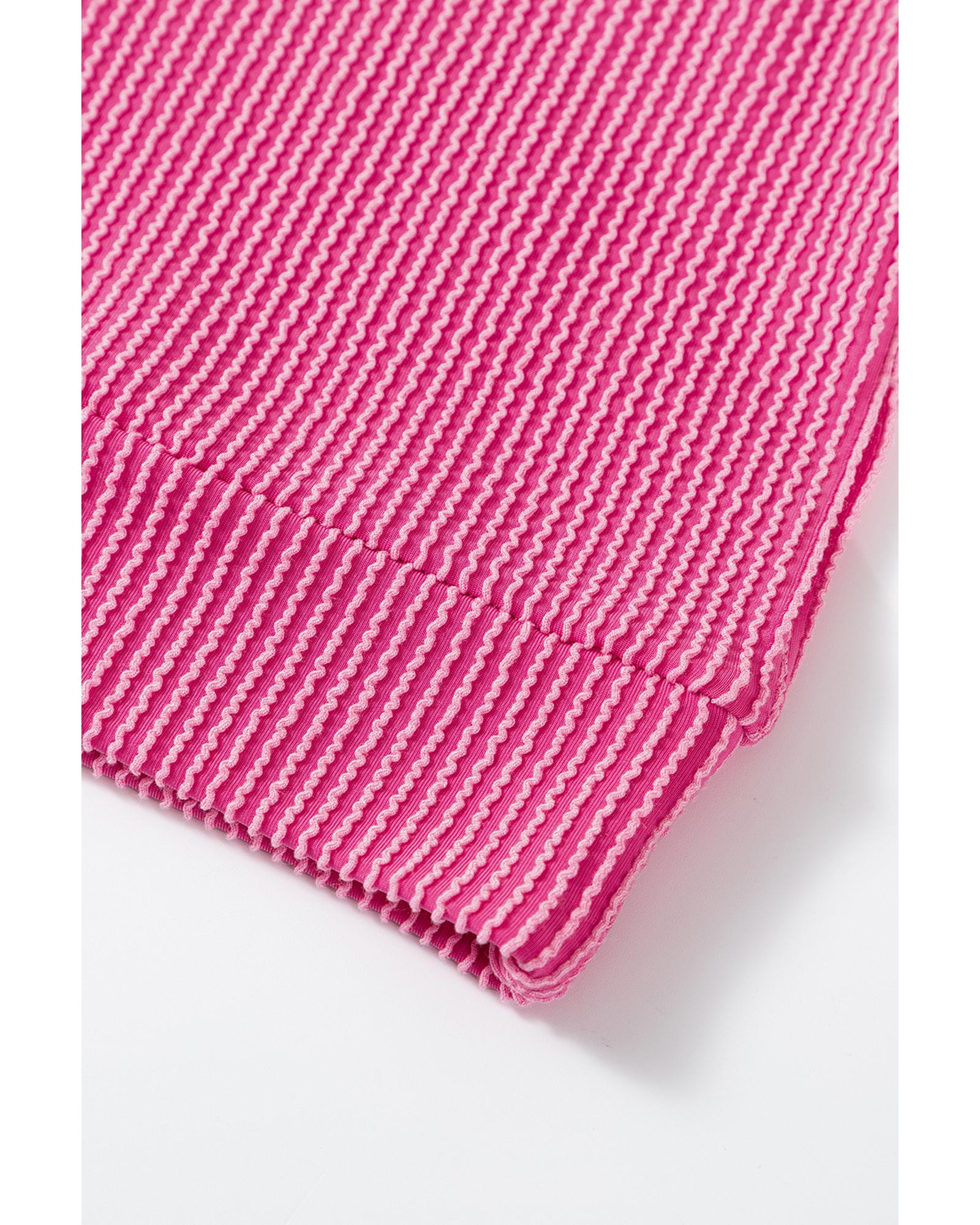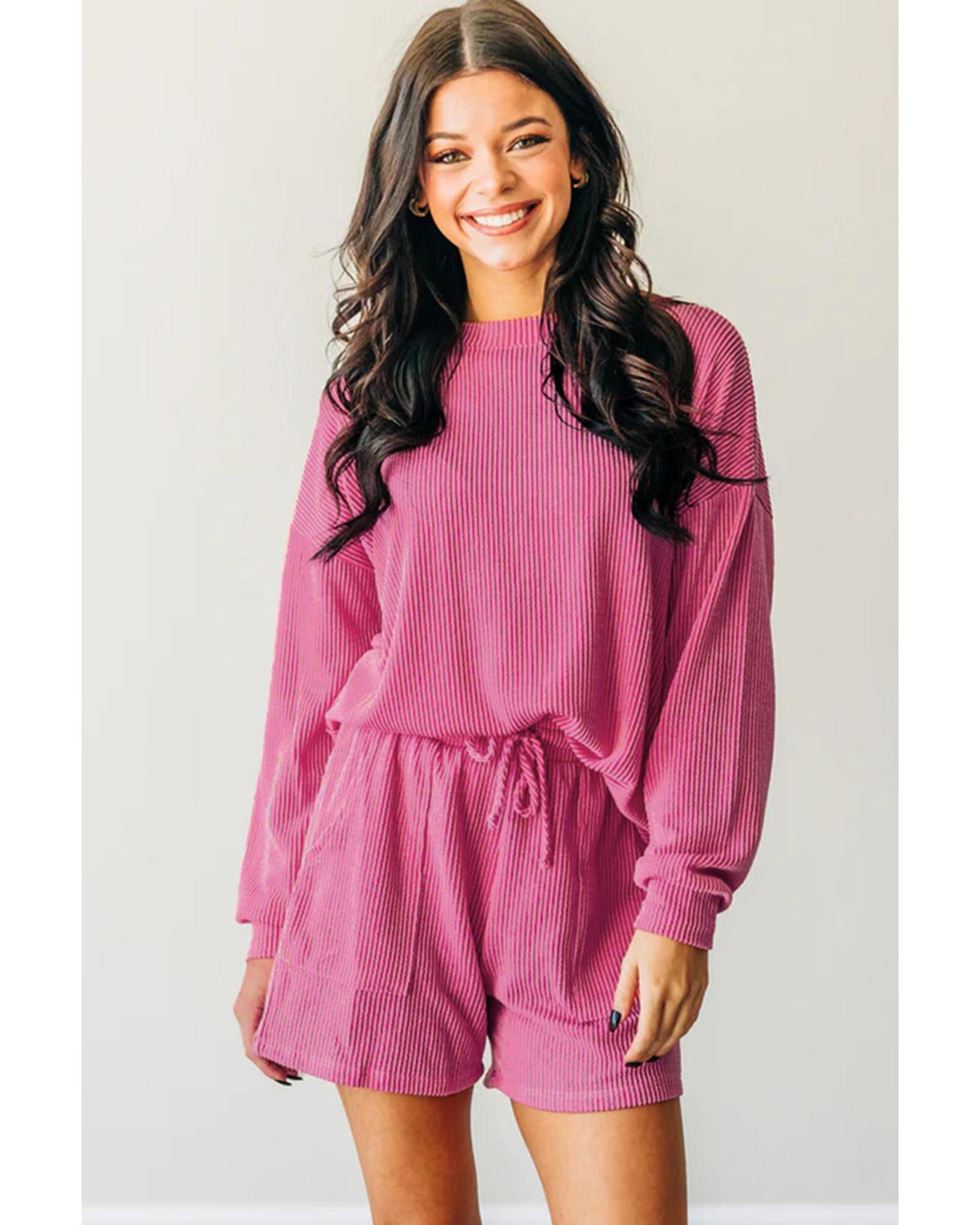 - Strawberry Pink Corded Textured Long Sleeve Top and Shorts Set
