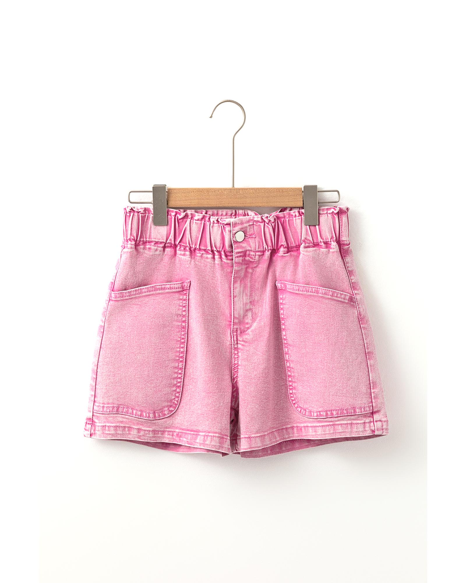 Strawberry Pink Elastic High Waisted Denim Shorts – 12 US