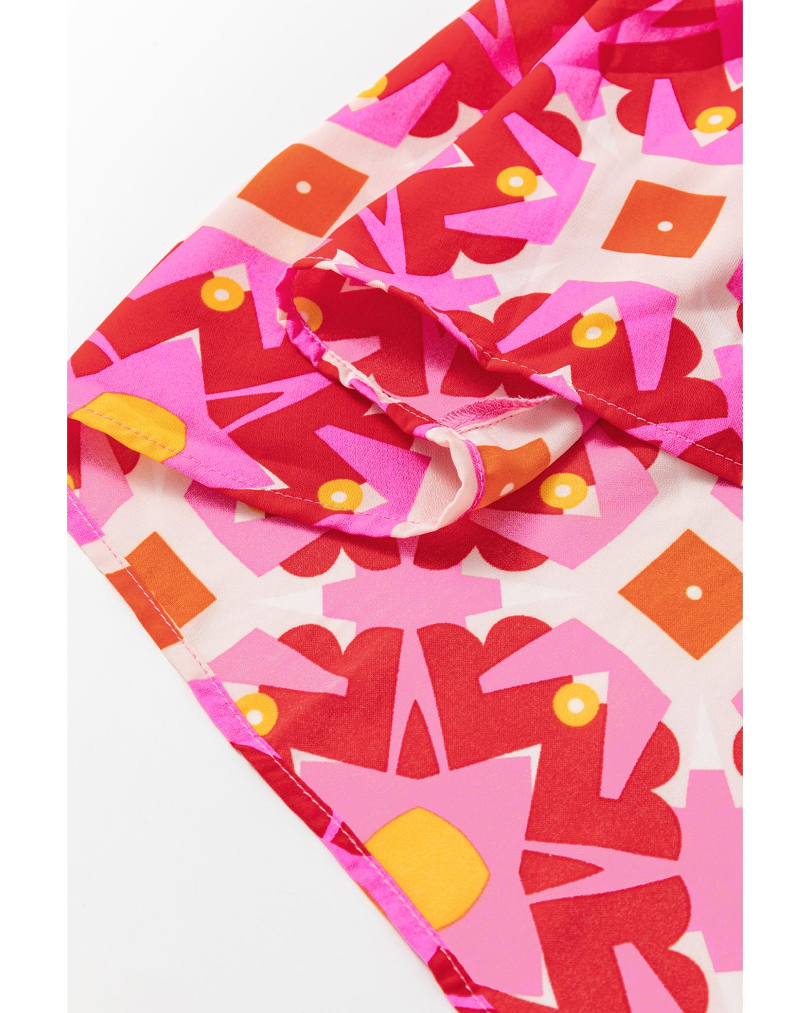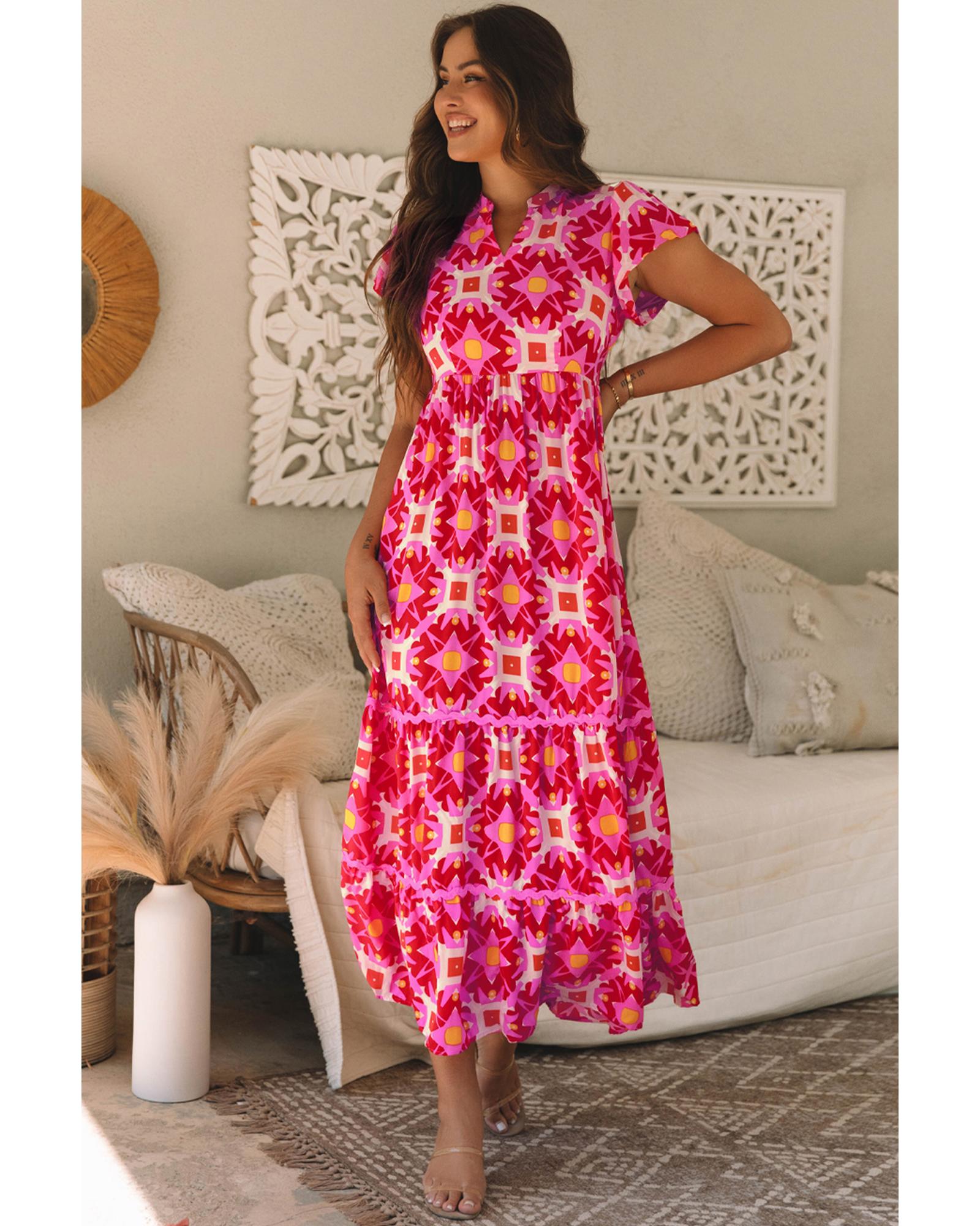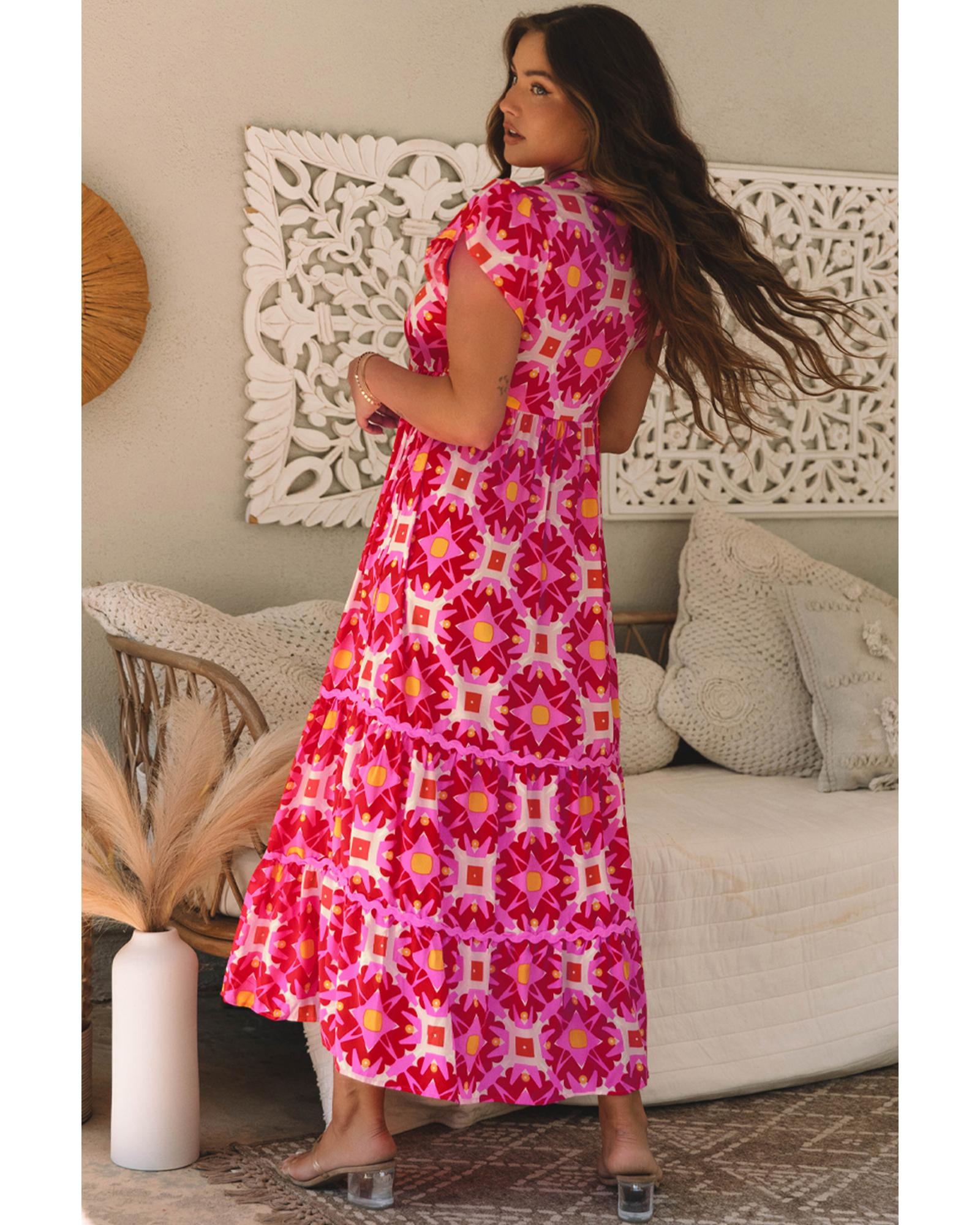 Strawberry Pink Geo Print V-neck Maxi Dress – M