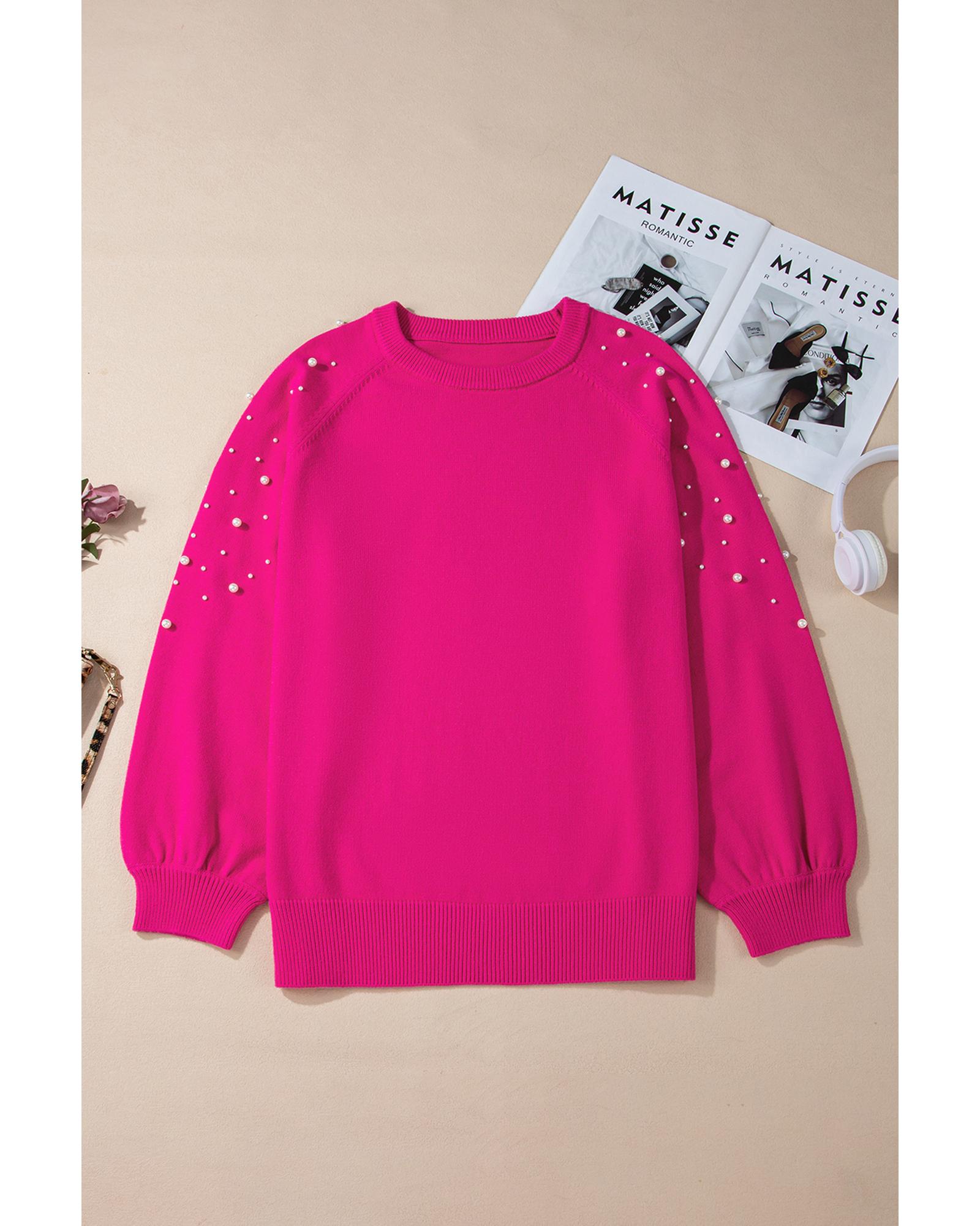 Strawberry Pink Pearled Decor Raglan Sleeve Plus Size Sweater – 1X