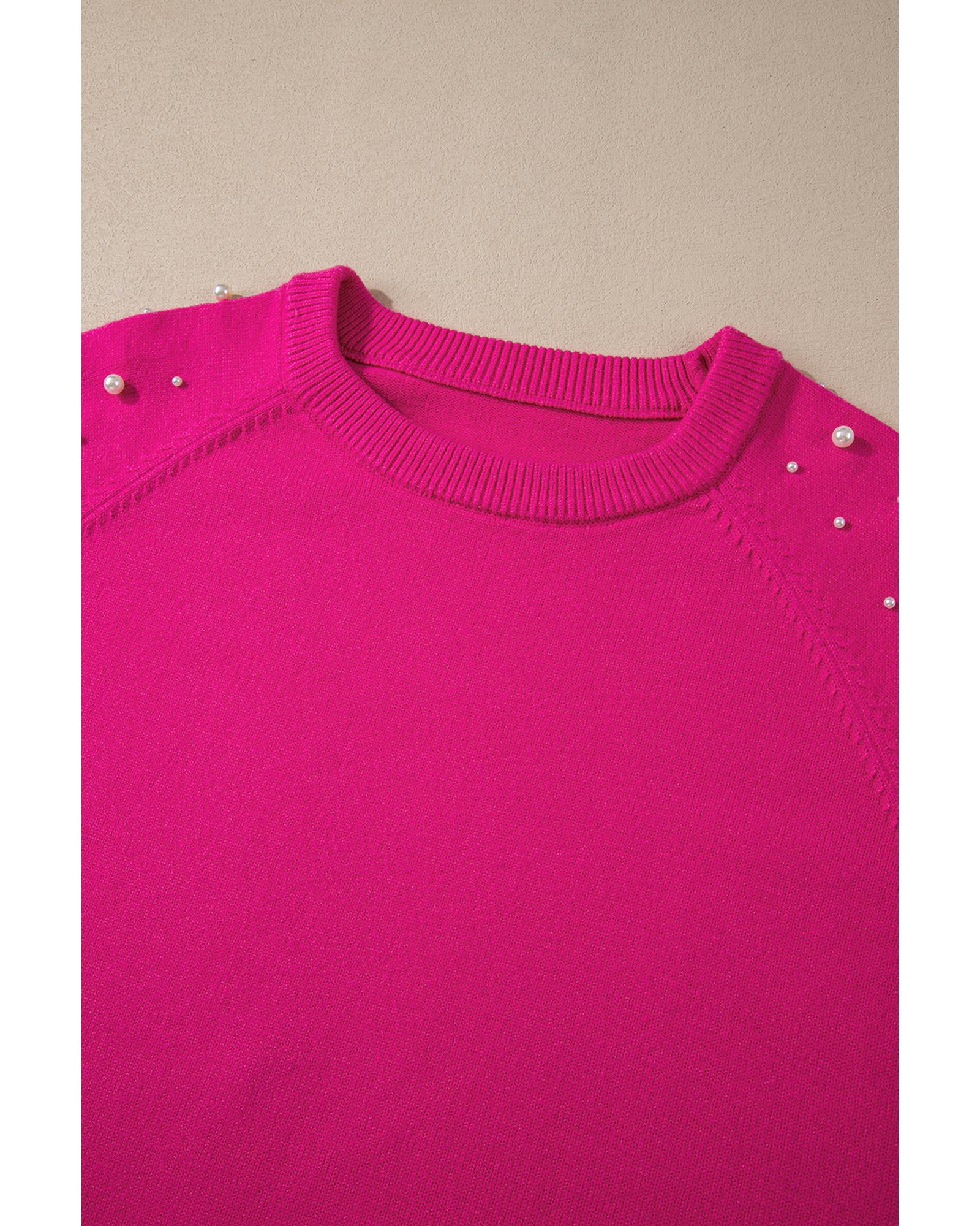 Strawberry Pink Pearled Decor Raglan Sleeve Plus Size Sweater – 3X