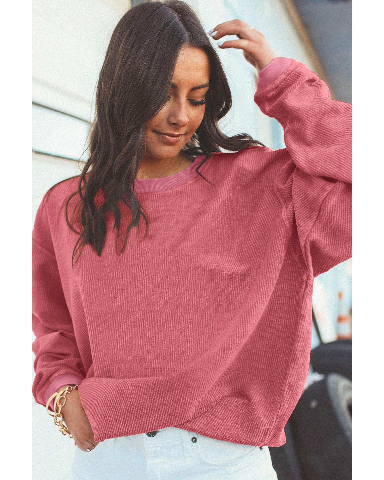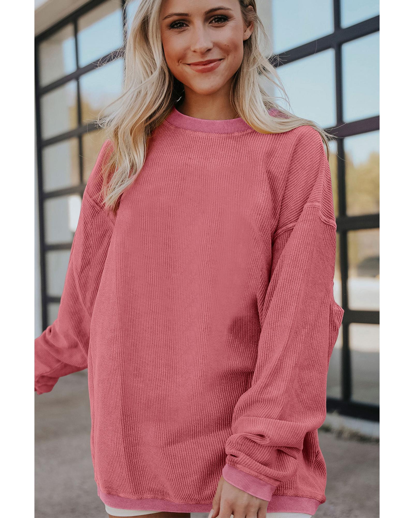 - Strawberry Pink Ribbed Corded Oversized Sweatshirt