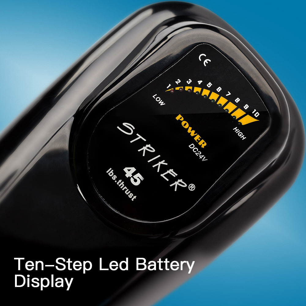 With super-low power consumption, the Genuine Striker gets the most out of your 12V battery. And thanks to its clear LED display, you will always be in control of the power. Suitable for small water crafts such as inflatable boats, canoes and aluminum fishing boats, refer to the below graph for boat size.Simply twist the handle and sneak up on the fish at the optimal speed. With five forward speeds and three reverse speeds, you’ll make the right approach every time.