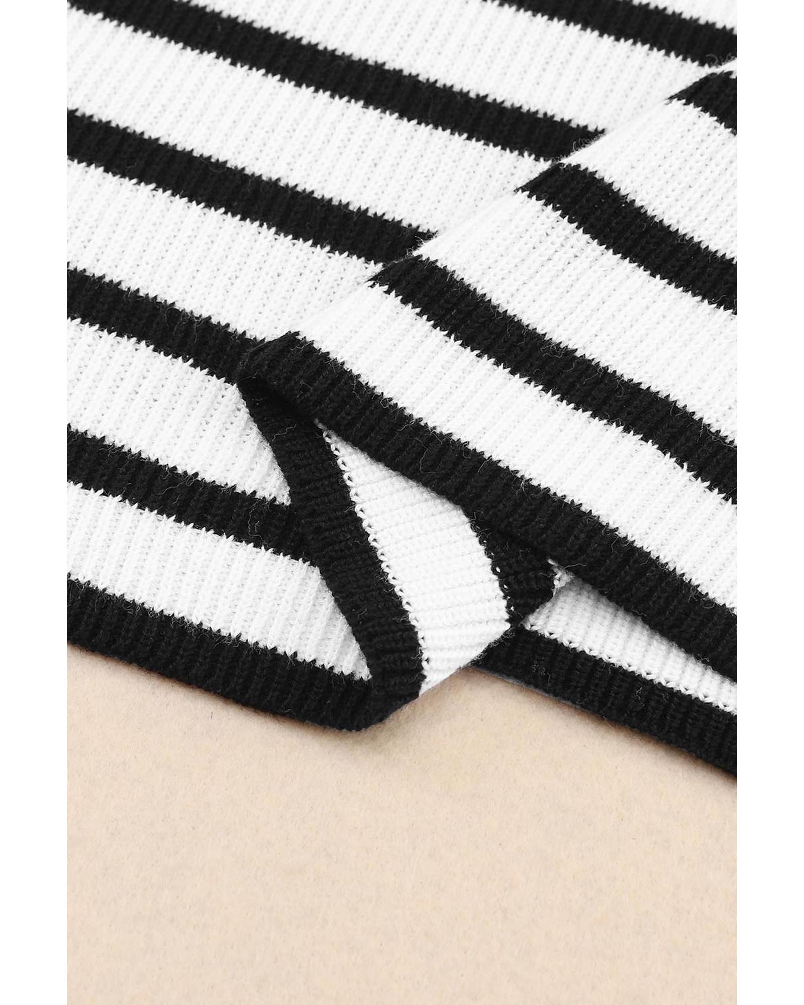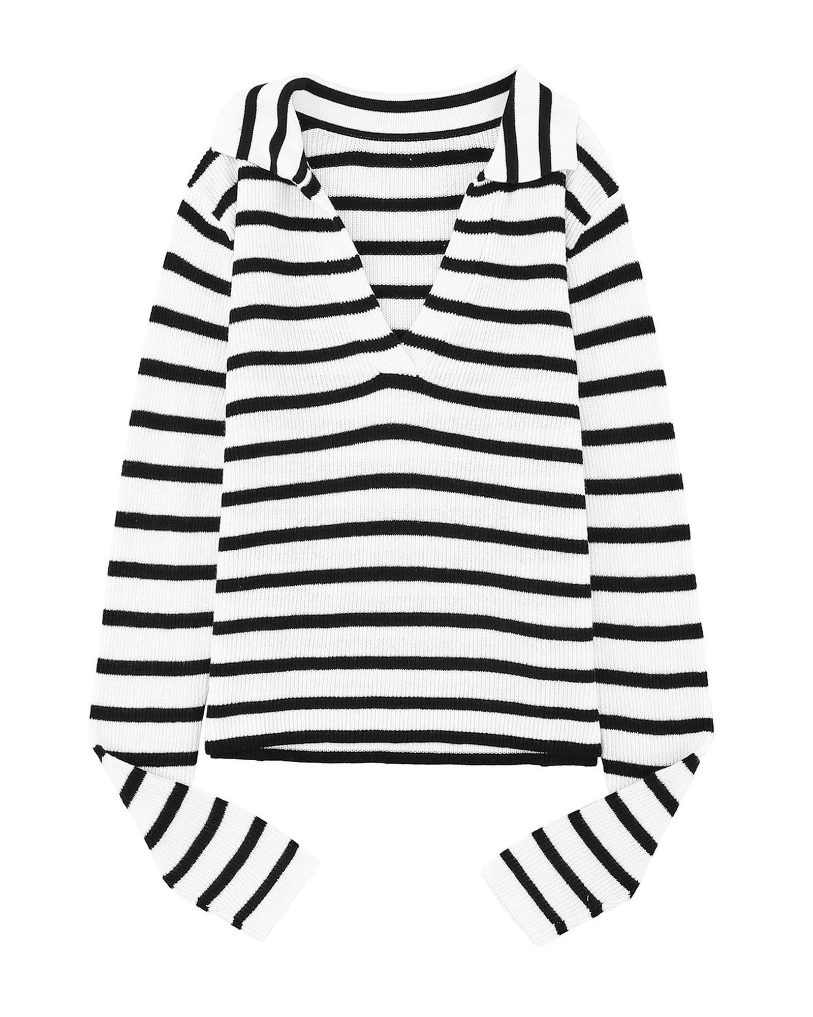 Stripe Collared V Neck Lightweight Knit Casual Sweater – S