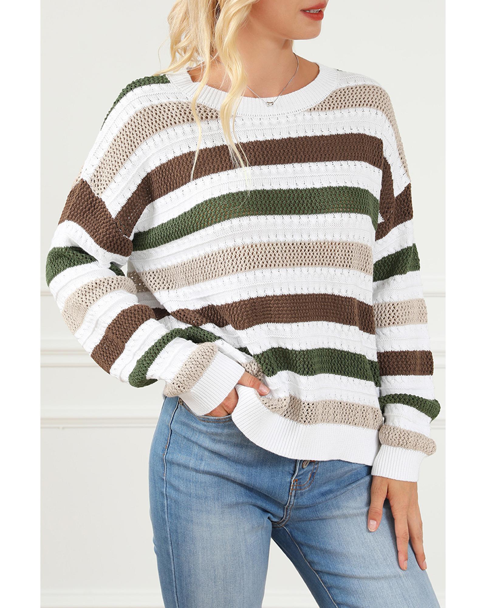 - Stripe Crochet Hollow out Knit Sweater