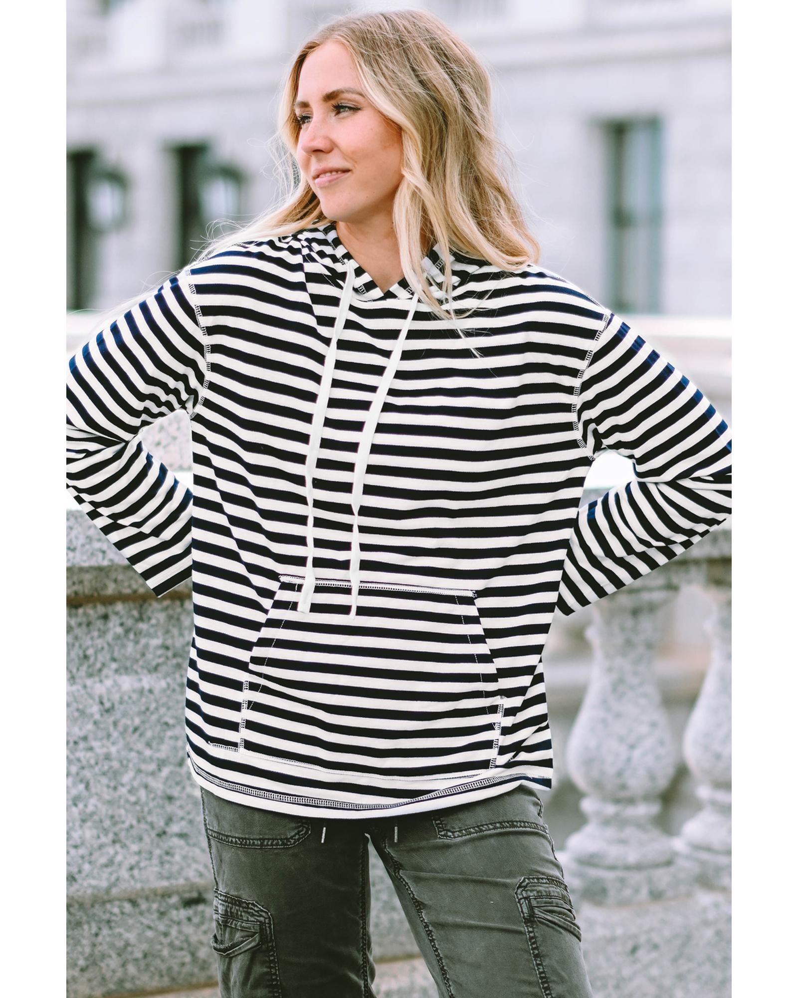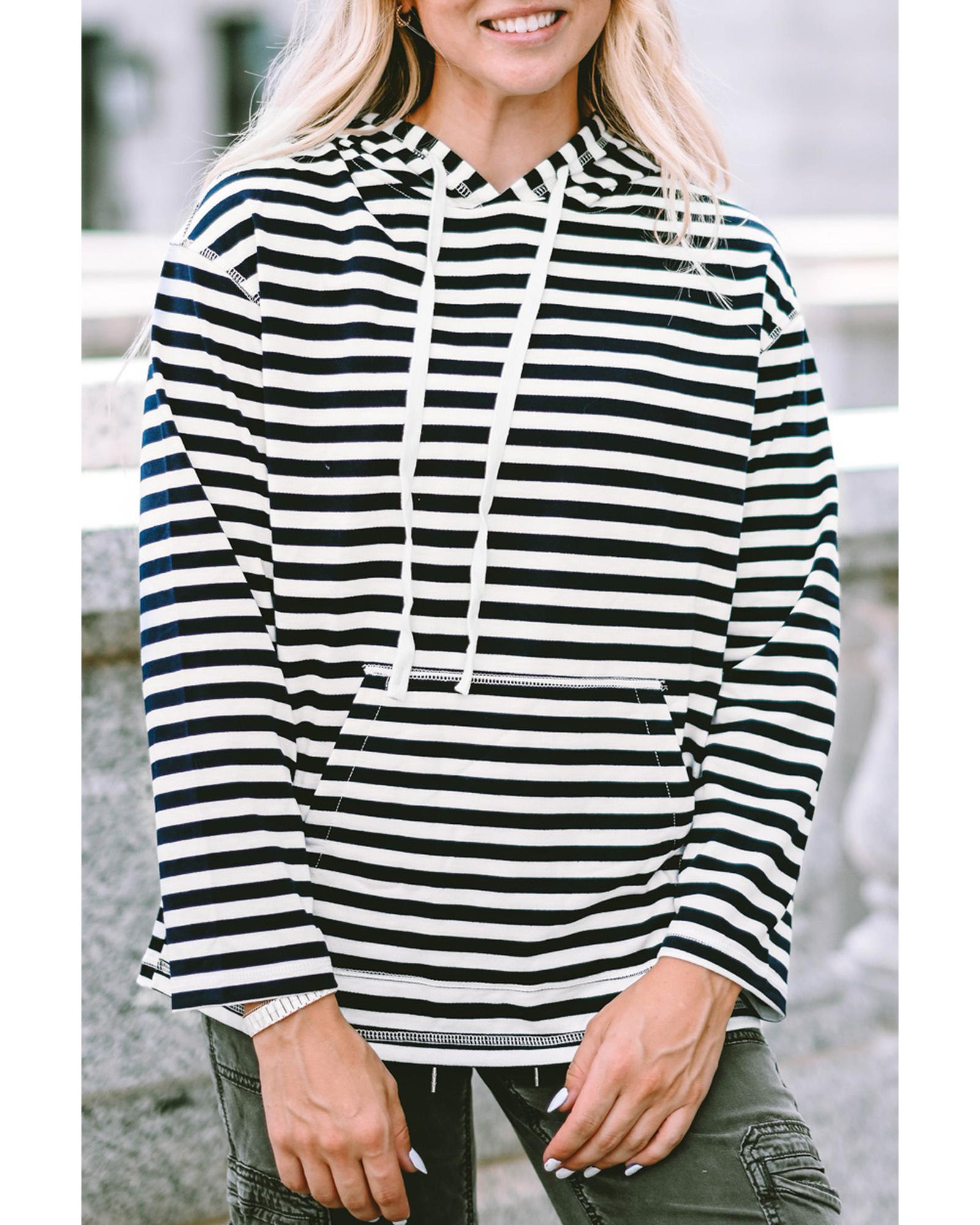 Stripe Kangaroo Pocket Drawstring Hoodie – M