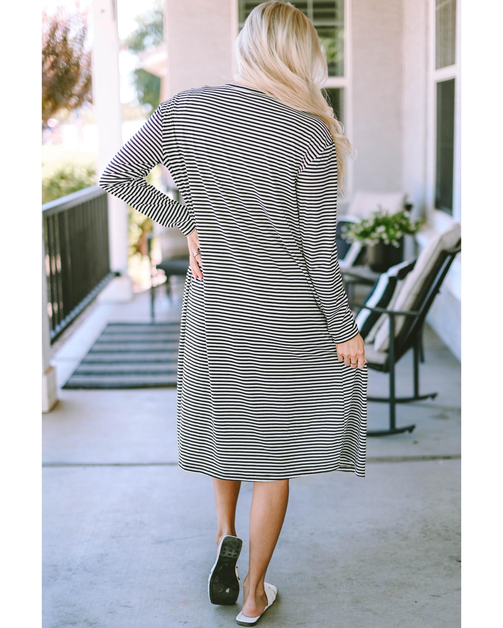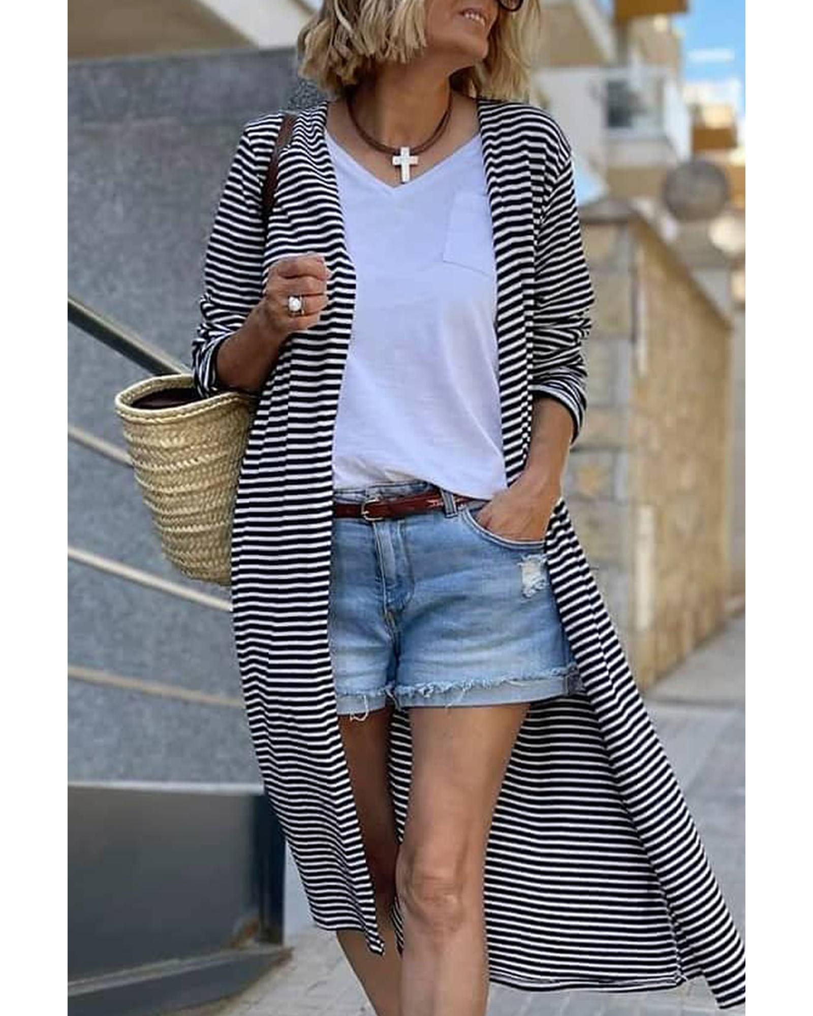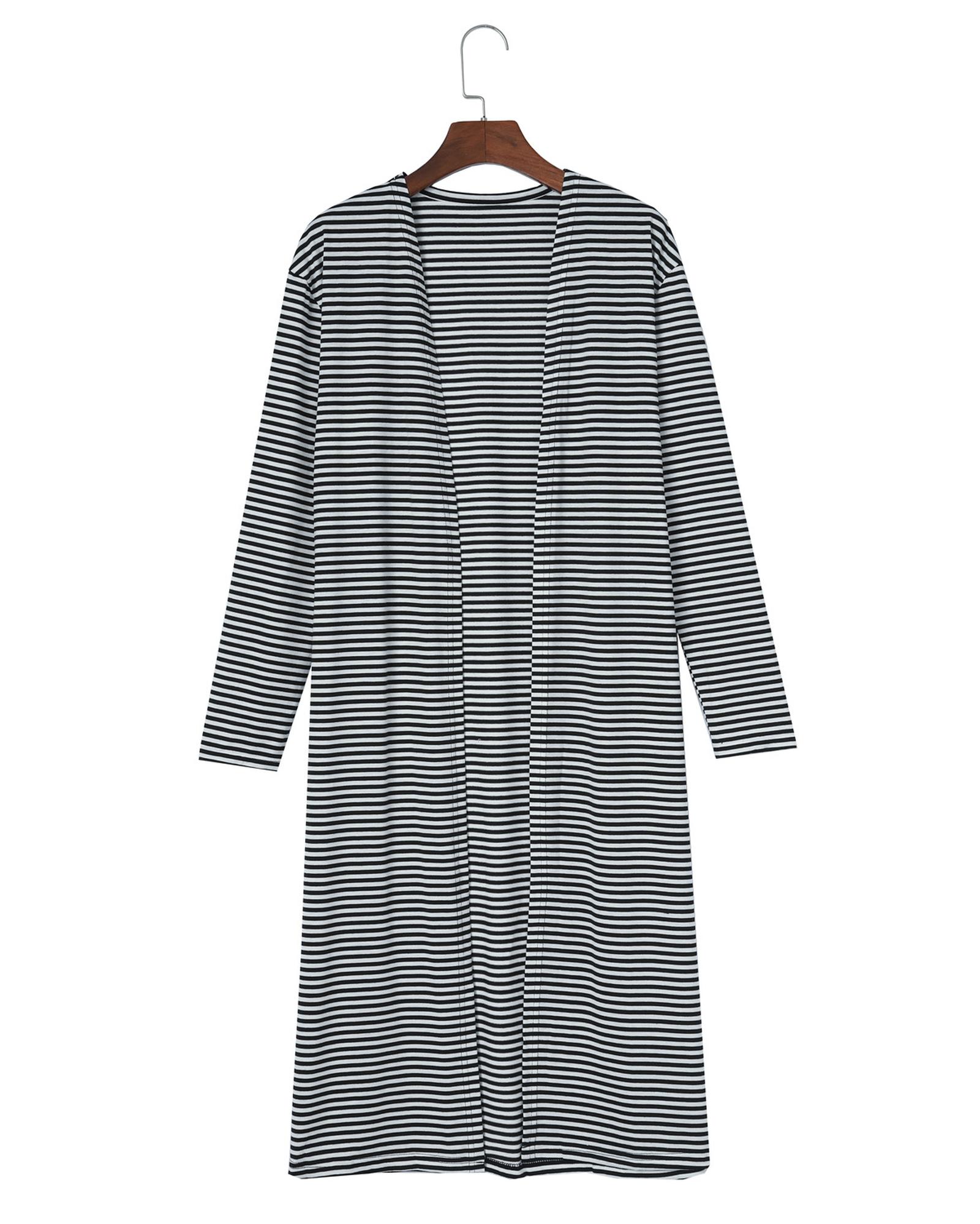 Stripe Open Front Long Cardigan – L