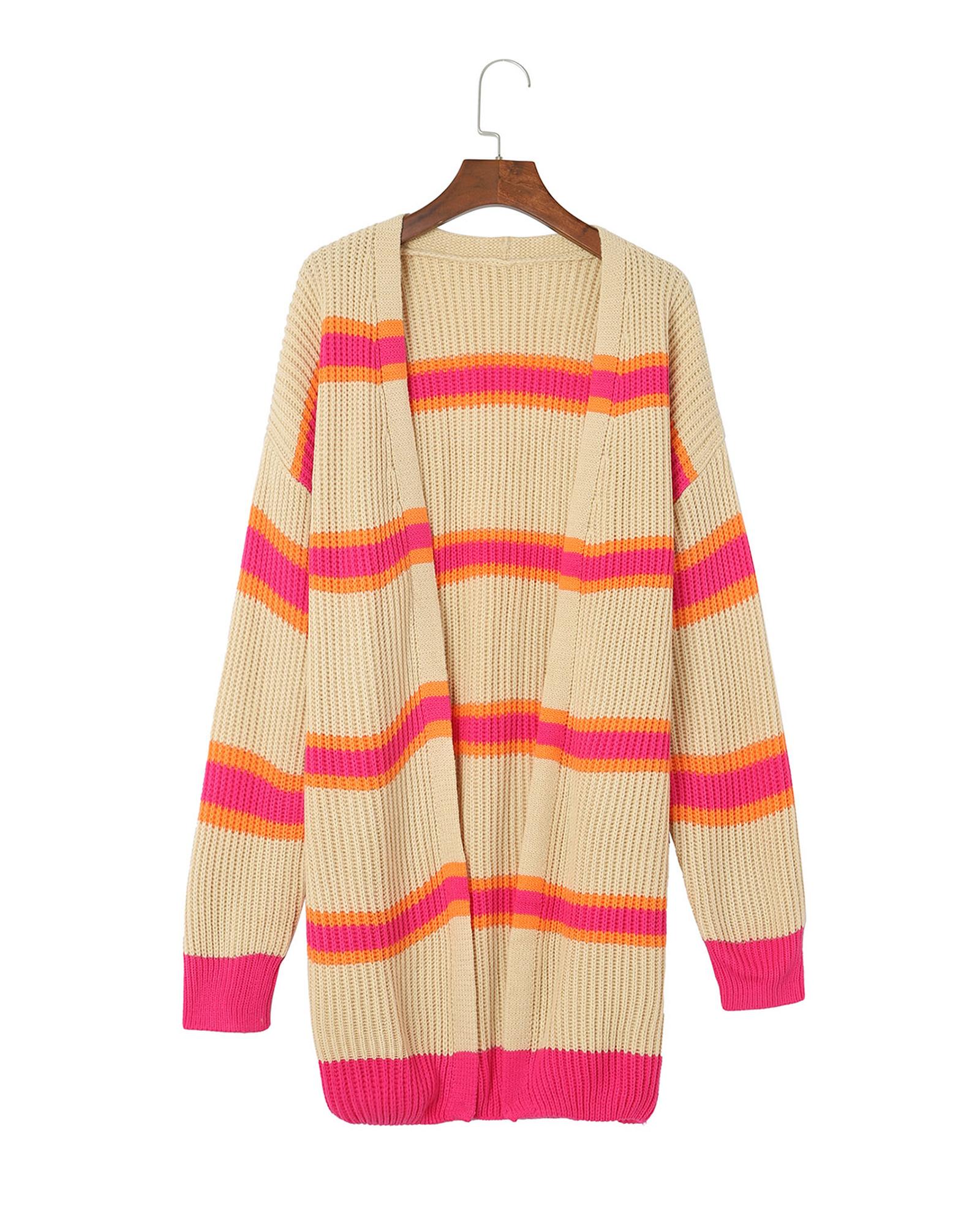 Stripe Printed Ribbed Long Knitted Cardigan – M