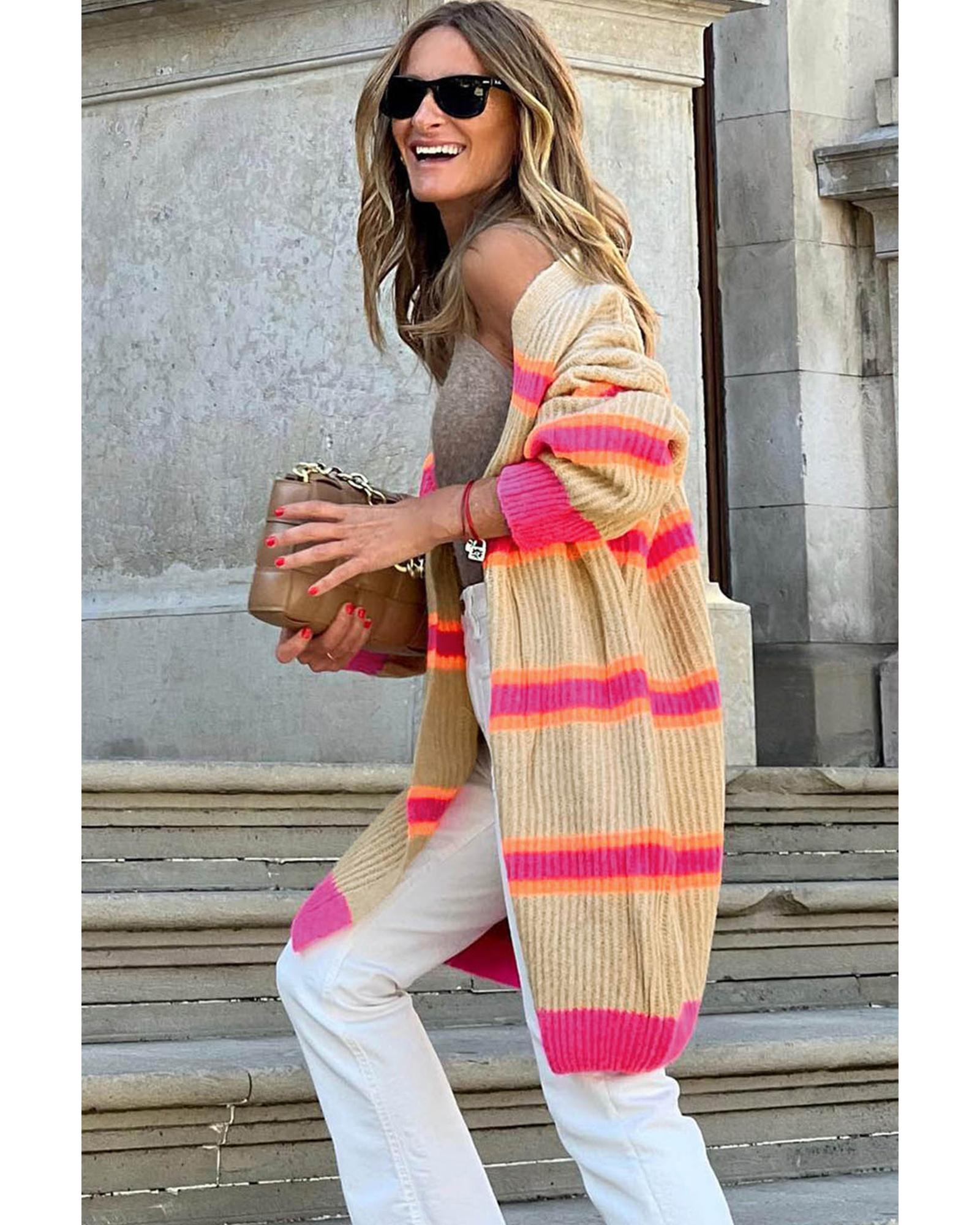 Stripe Printed Ribbed Long Knitted Cardigan – XL