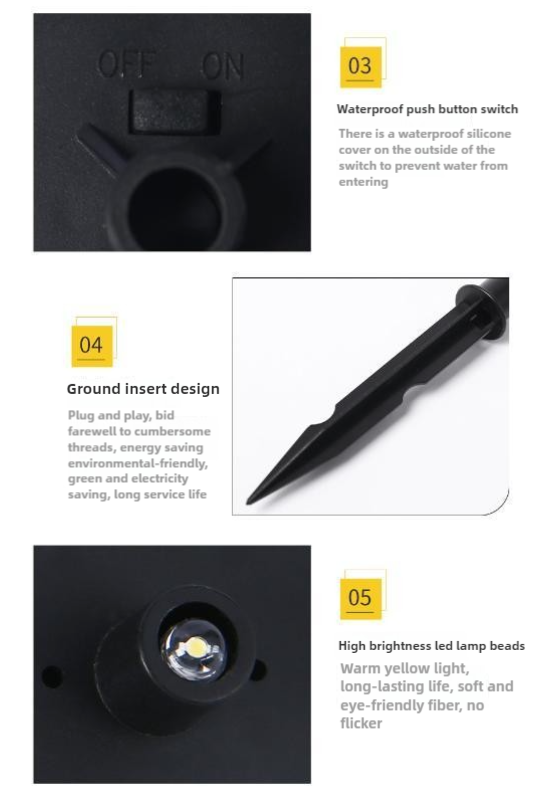 - Easy Installation: Includes a stake for easy insertion into the ground, no wiring required.