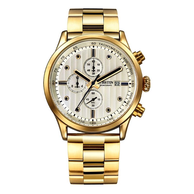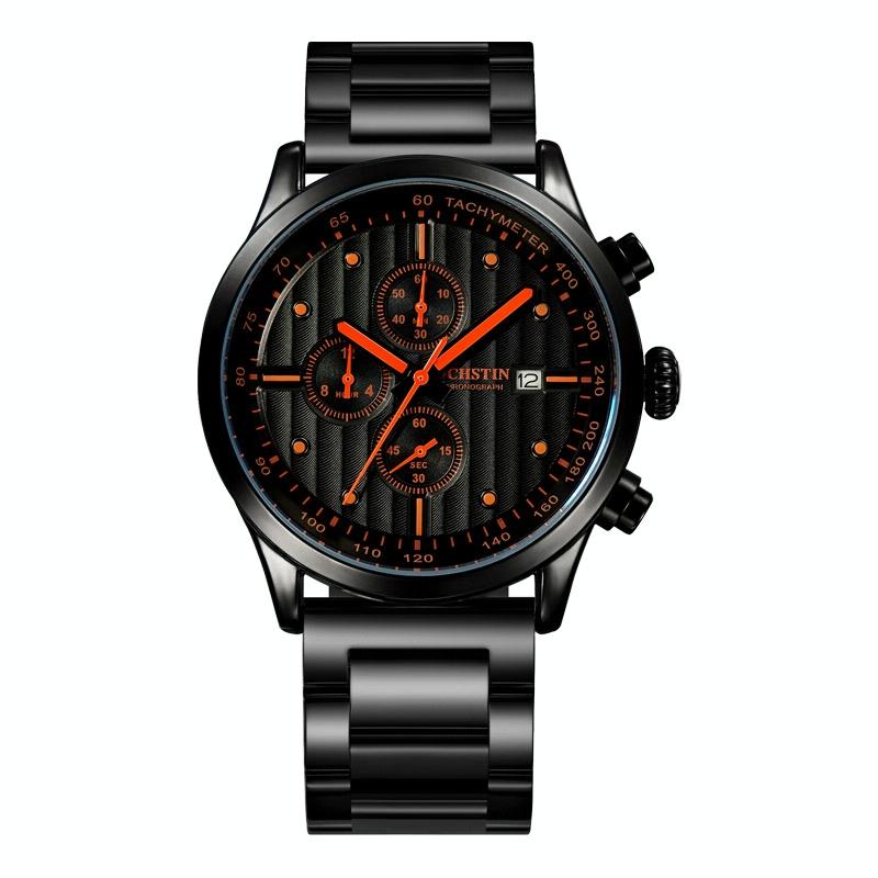 Stylish Multifunctional Men Quartz Watch with Steel Strap – Black White