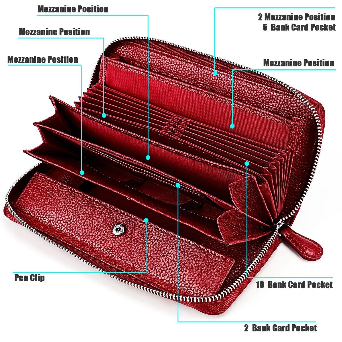 Stylish Rfid Clutch with Zipper – Lychee Texture – Red Wine