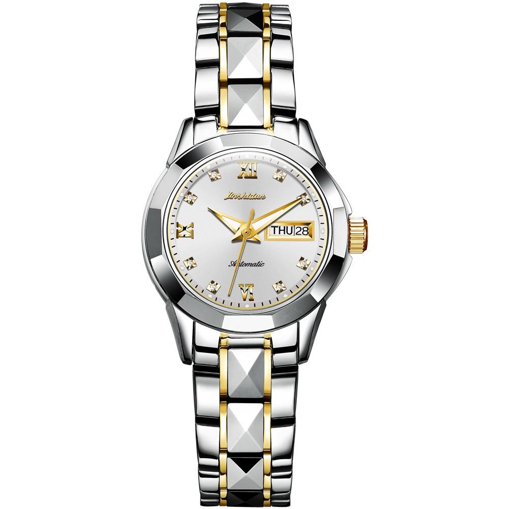 Stylish Waterproof Luminous Women Automatic Watch – 8813 – Silver Gold White