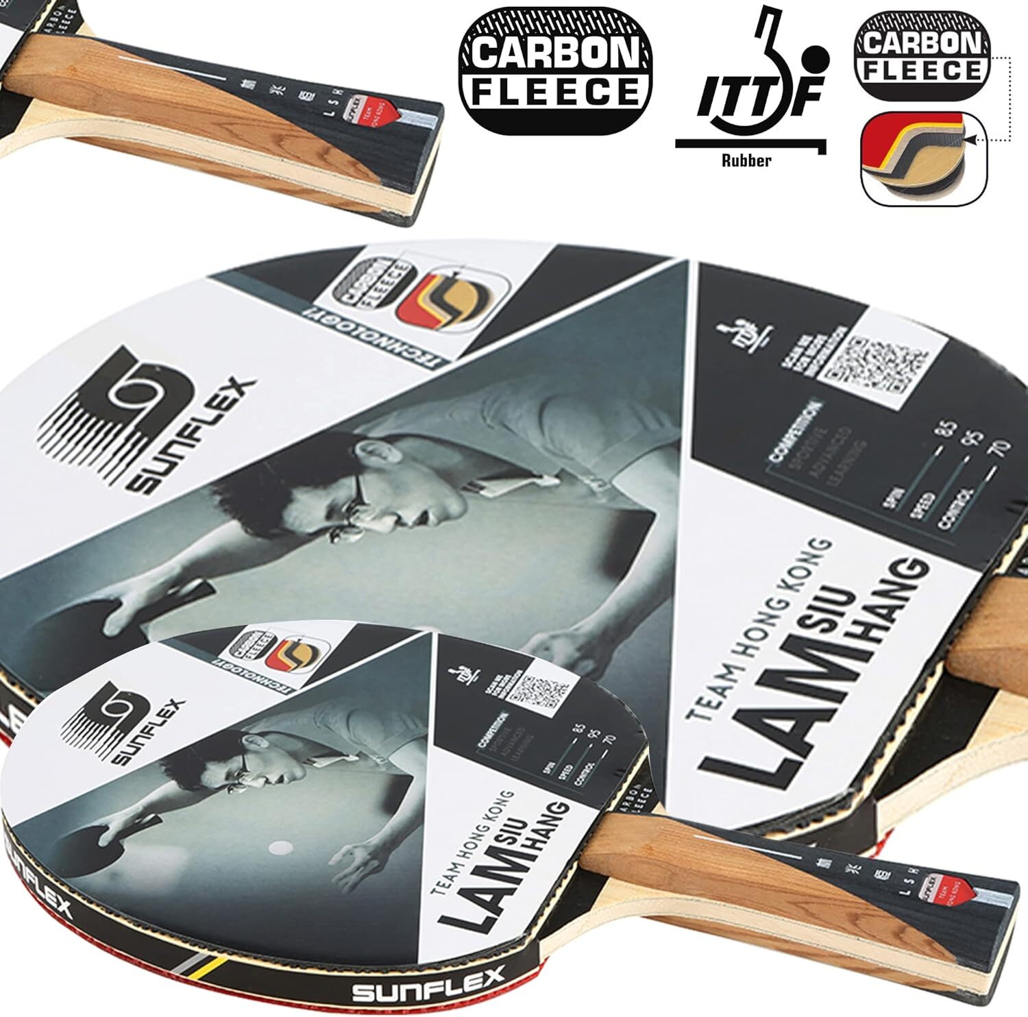 Elevate your table tennis game with the Sunflex Lam Siu Hang Team Hong Kong Table Tennis Racket, a high-performance choice for players seeking precision and power. Endorsed by professional player Lam Siu Hang, this racket is engineered to deliver top-notch performance in every match.
