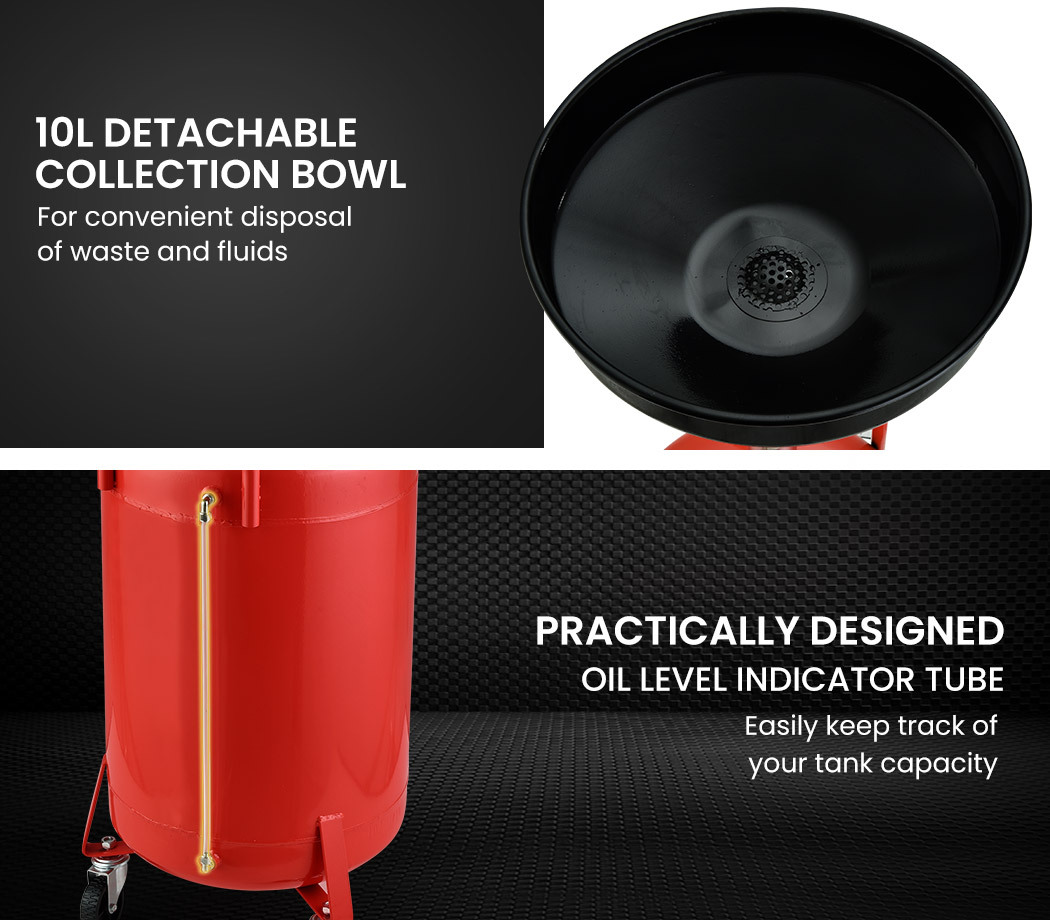 T-REX 60L Mobile Waste Oil Drainer Tank, Telescopic, for Car Engine, Workshop