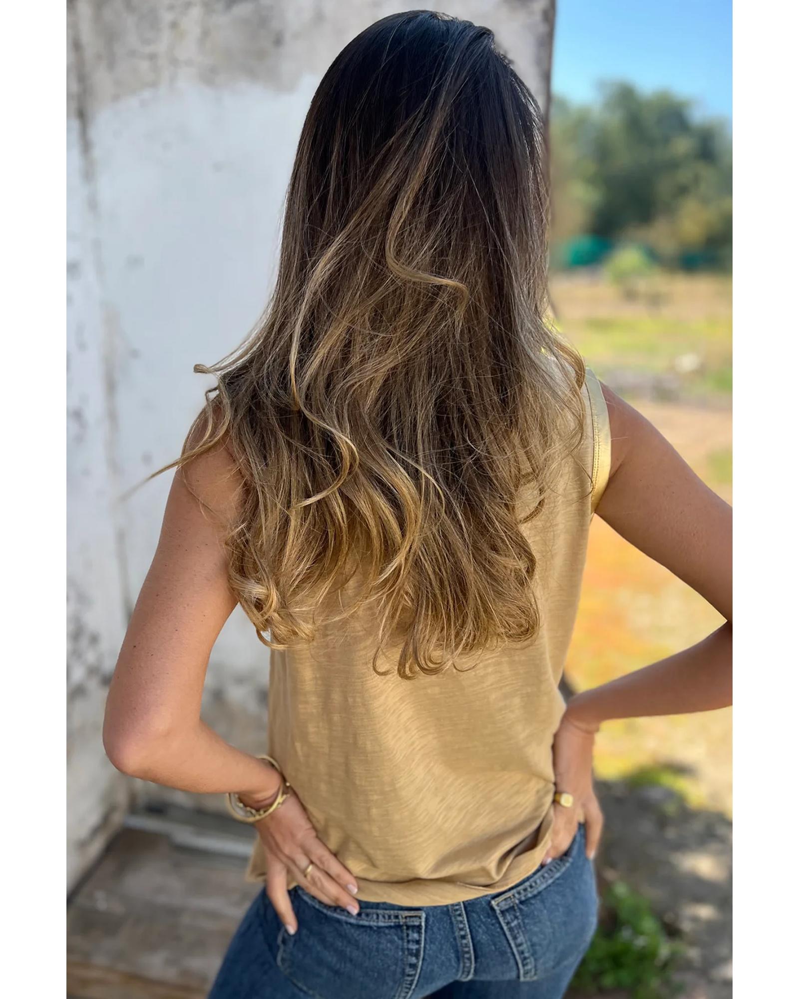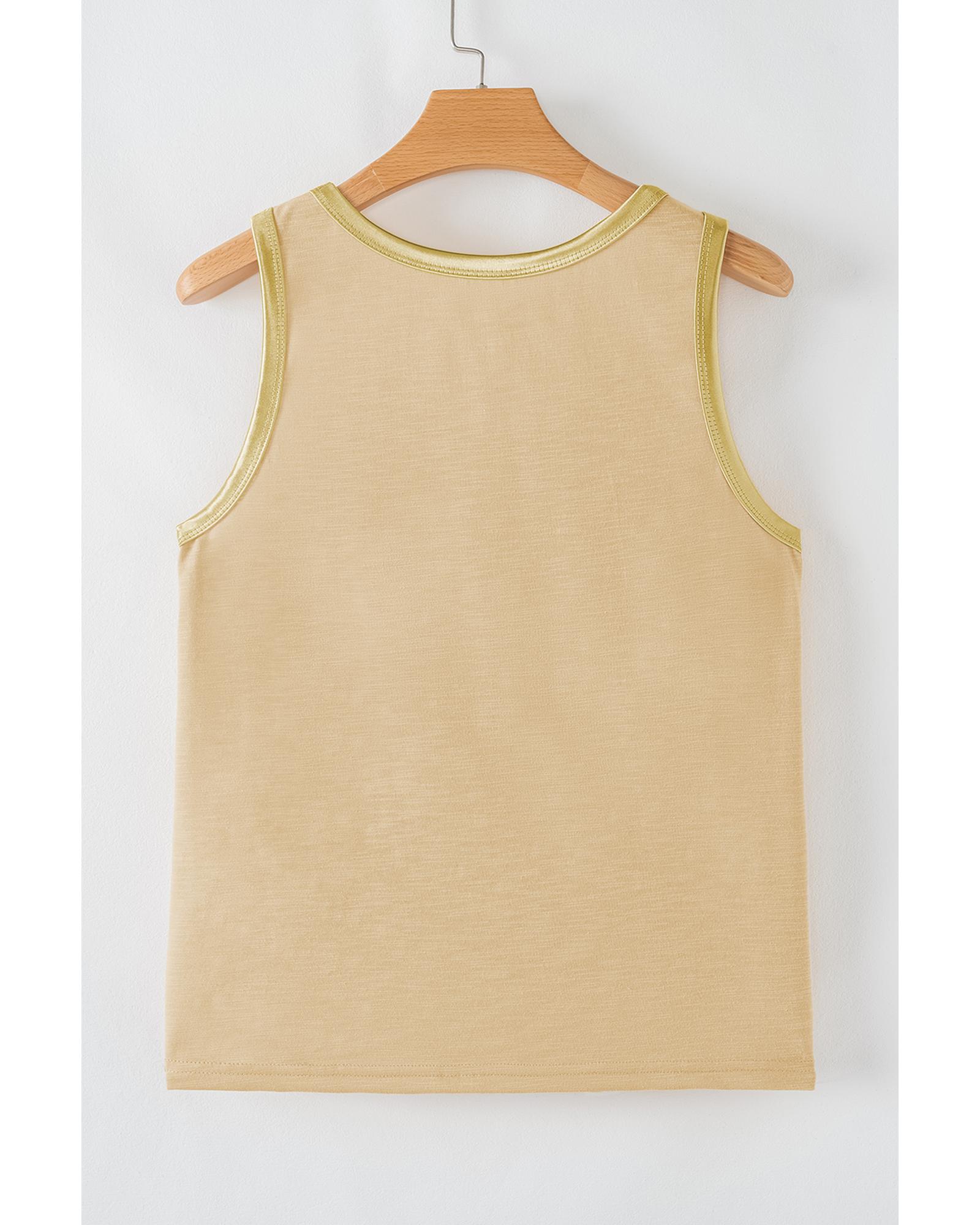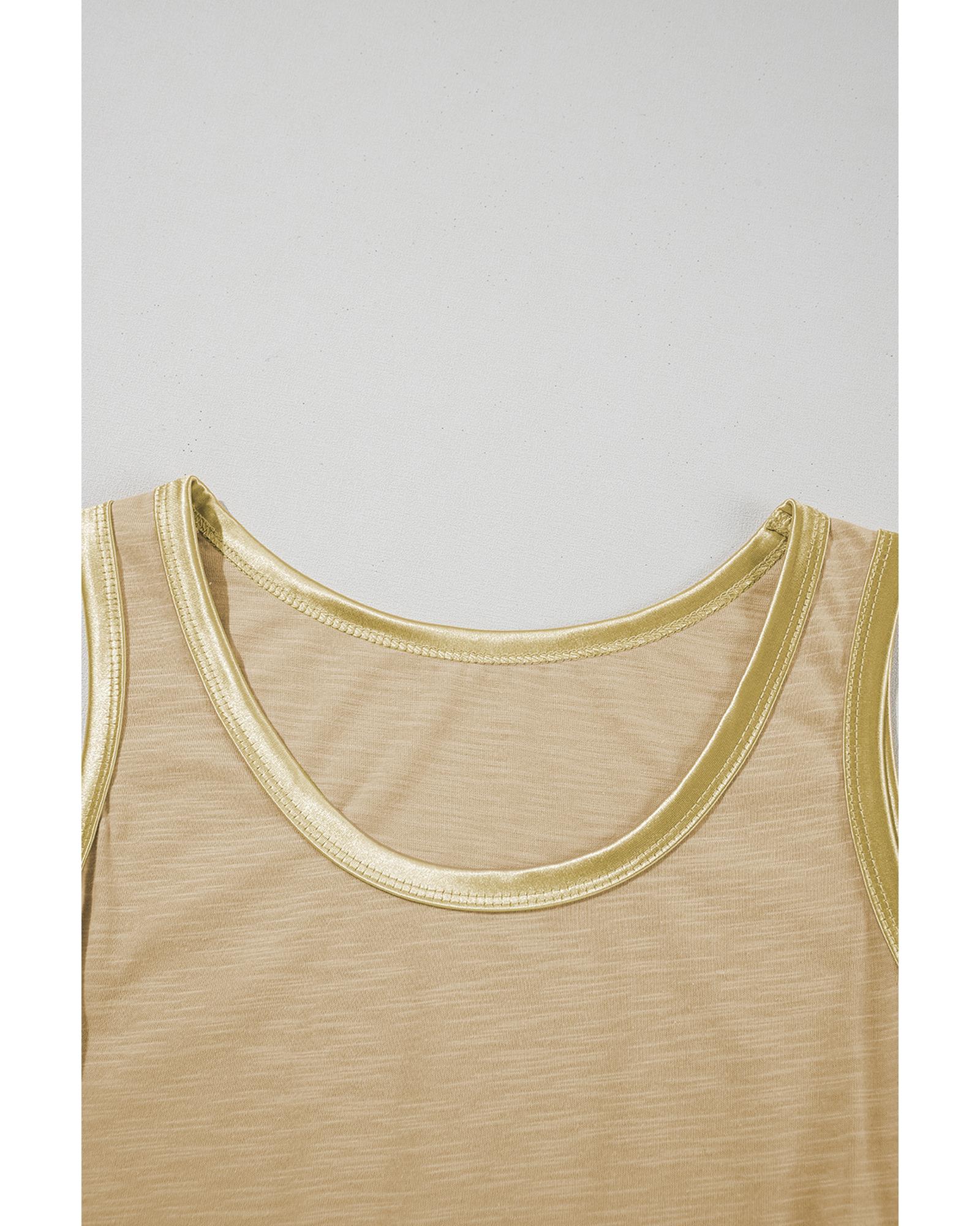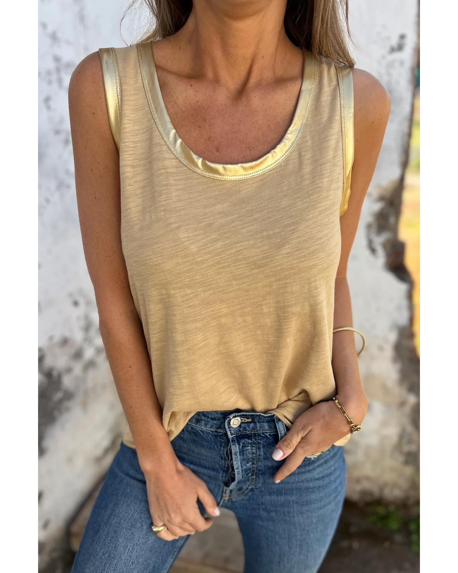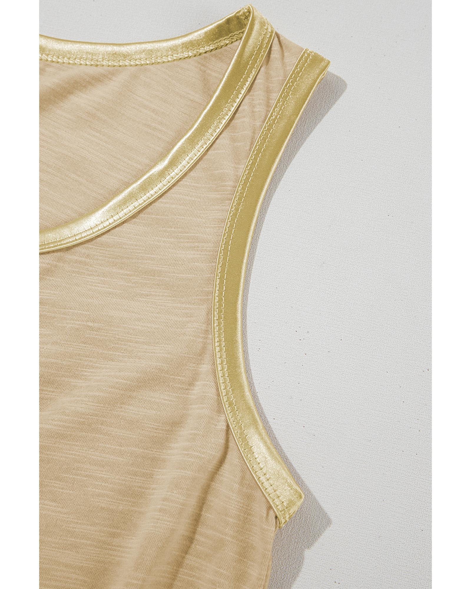 Tan Metallic Sheen Edge Scoop Neck Tank Top – S
