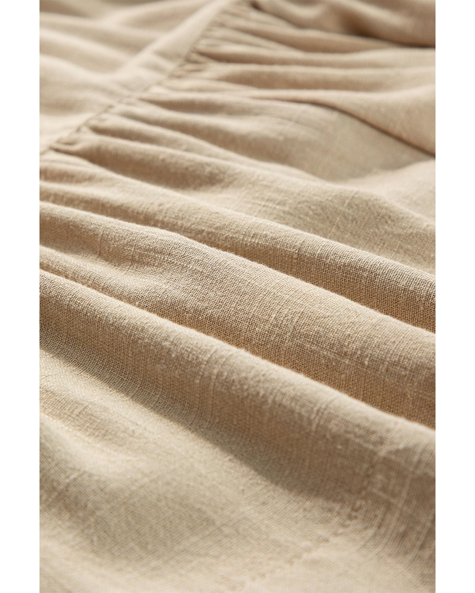 Tan Puff Sleeve Buttoned Tiered Pleated Shirt Mini Dress – L