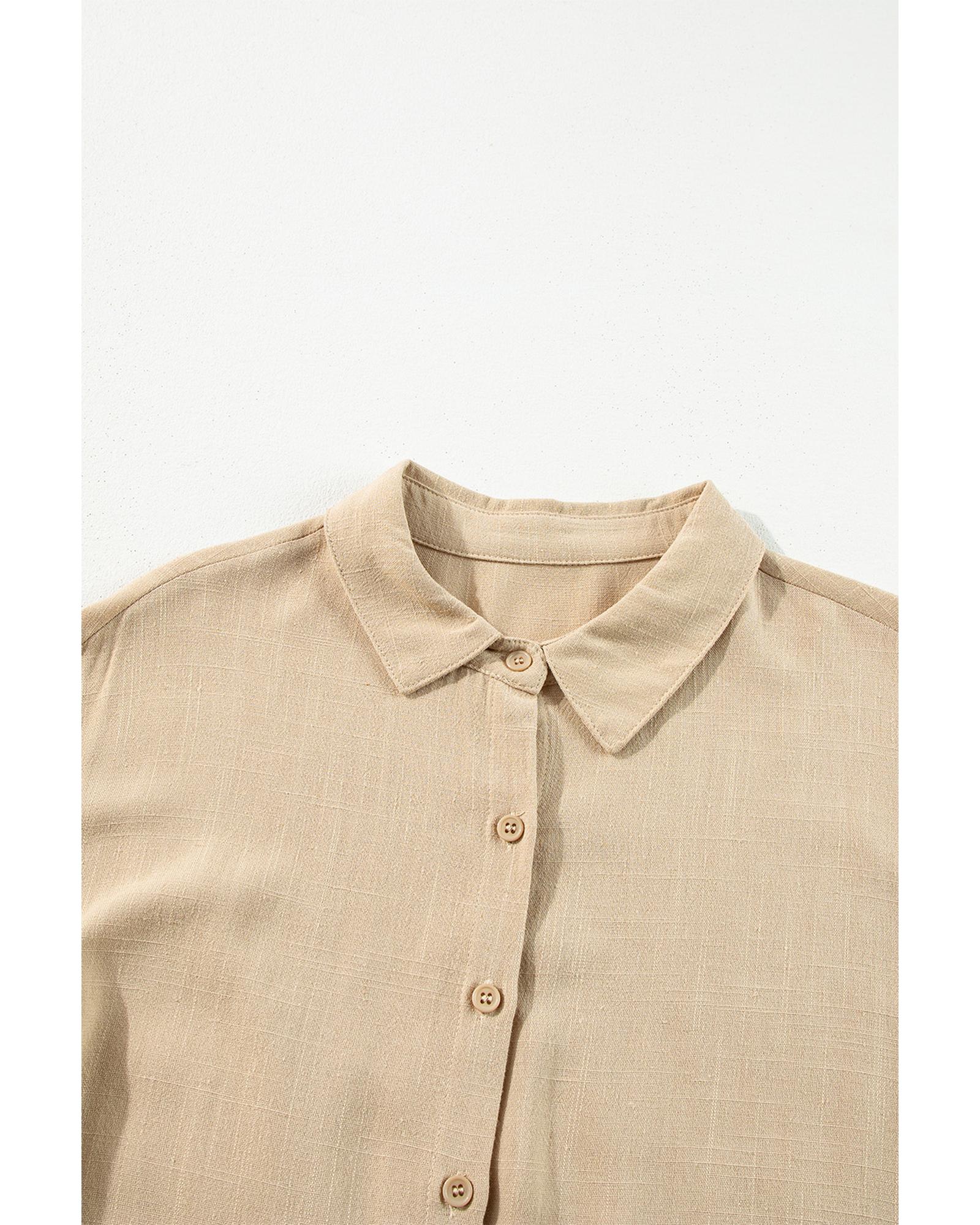 Tan Puff Sleeve Buttoned Tiered Pleated Shirt Mini Dress – S