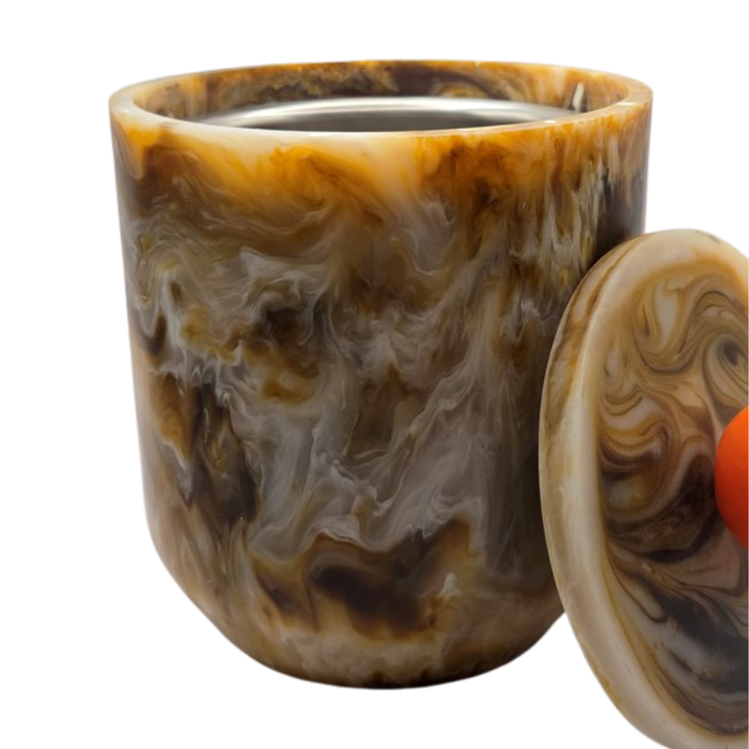 Add a touch of luxury to your home bar with the Toffee Resin & Stainless-Steel Ice Bucket?made for hosts who love to combine style with function.